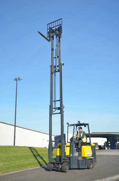 Enter the Irish-manufactured Aisle-Master, a Very Narrow Aisle (VNA) articulated forklift truck.
