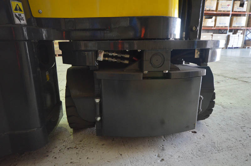 There’s also the fact that unlike conventional, counterbalance forklifts, the rear wheels are fixed, while the front wheels turn.