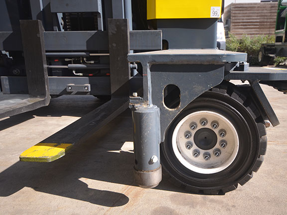 A high degree of accuracy can be achieved when approaching and picking up a load, and the load lift is stable throughout the lift height. Be careful not to accidently move the toggle to east-west mode if your front wheels are hard up against anything, as they kick out when rotating, increasing the overall width of the forklift and potentially causing damage to unsuspecting racking.