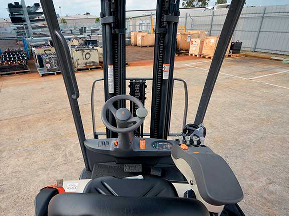 The impossibly tight turning circle; the twin AC motors; the toggle controls rather than clunky levers; the improvement on dampening when lifting through the mast stages; the start-up sequence – designed with safety in mind, but which gives operators the shits because they can’t start the damn thing, are all ticked off.