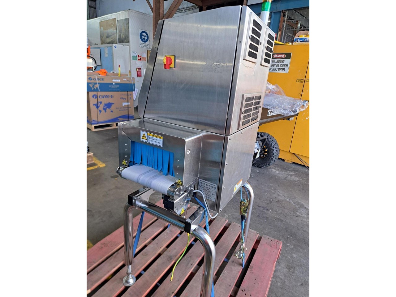 Compact Food-Grade X-Ray Inspection Conveyor with Touchscreen This high-performance X-Ray inspection system is designed for food-grade applications, offering precision detection, reliability, and ease of use. The unit is in excellent working condition and comes complete with Validation and Emissions Reports. Key Specifications: Conveyor Belt Width: 250 mm Maximum Height Clearance: 120 mm Contaminants Detected by X-Ray: Ferrous and non-ferrous metals (including stainless steel, even in foil packaging) Glass Bone PVC plastic TFE (Teflon) plastics Ceramic or concrete Flavor/sugar clumps Additional Capabilities: Detect product uniformity issues, cracks, and chips Estimate product weight to ensure it meets set parameters Identify missing items within packaging and verify correct positioning Confirm product integrity while reducing false rejections Design Features: Sanitary construction, fully suitable for food processing facilities Compact footprint with touchscreen controls for intuitive operation Currently located in NSW