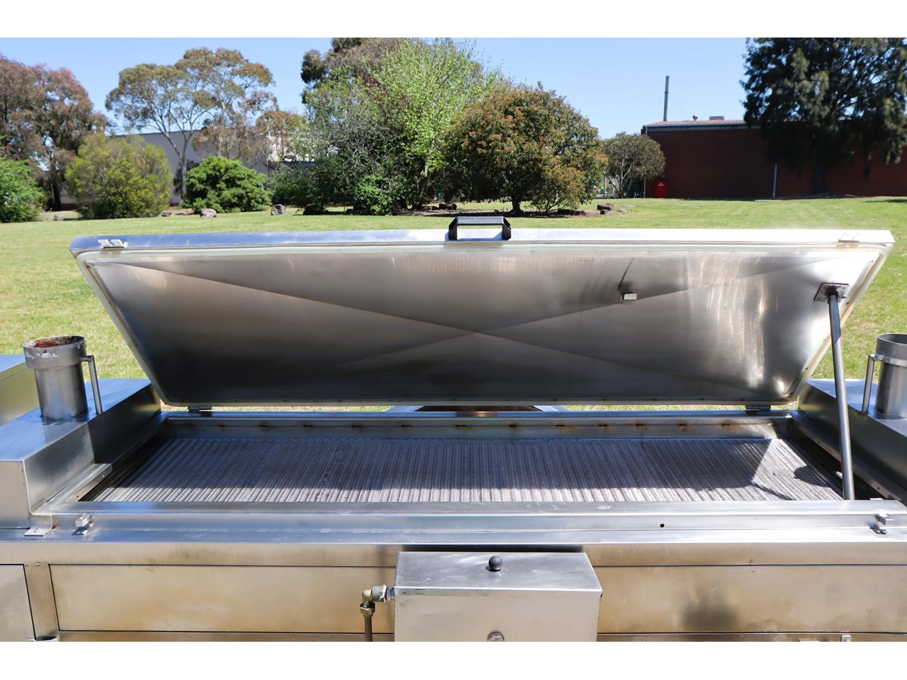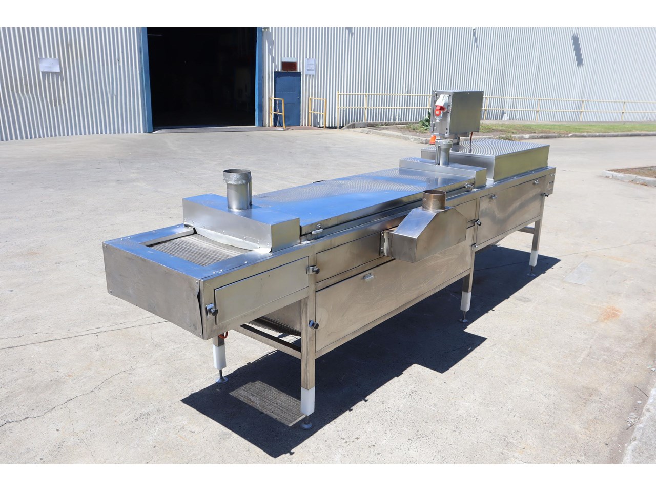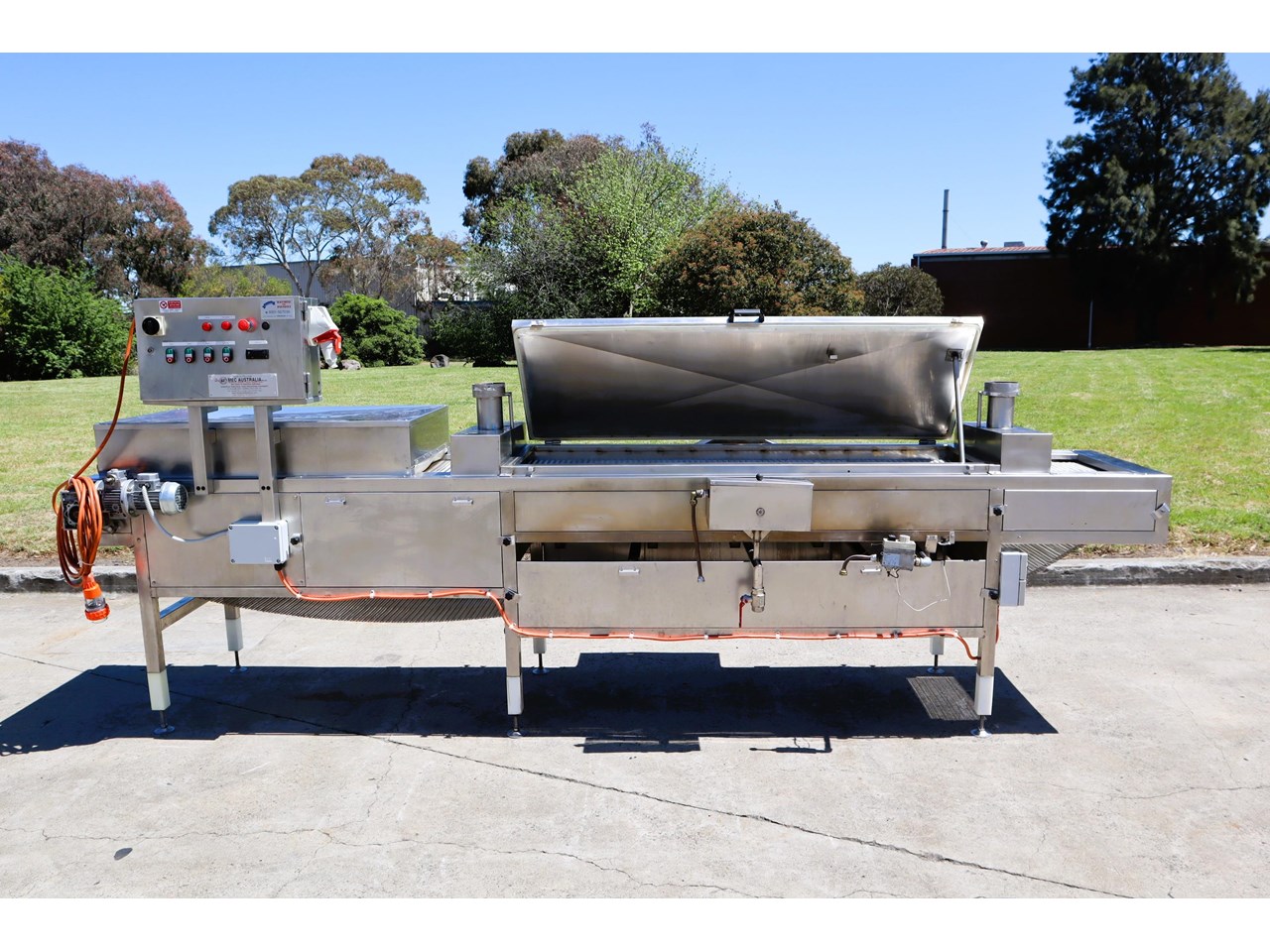- Enclosed steam pasteurisation tunnel with hinged access lid