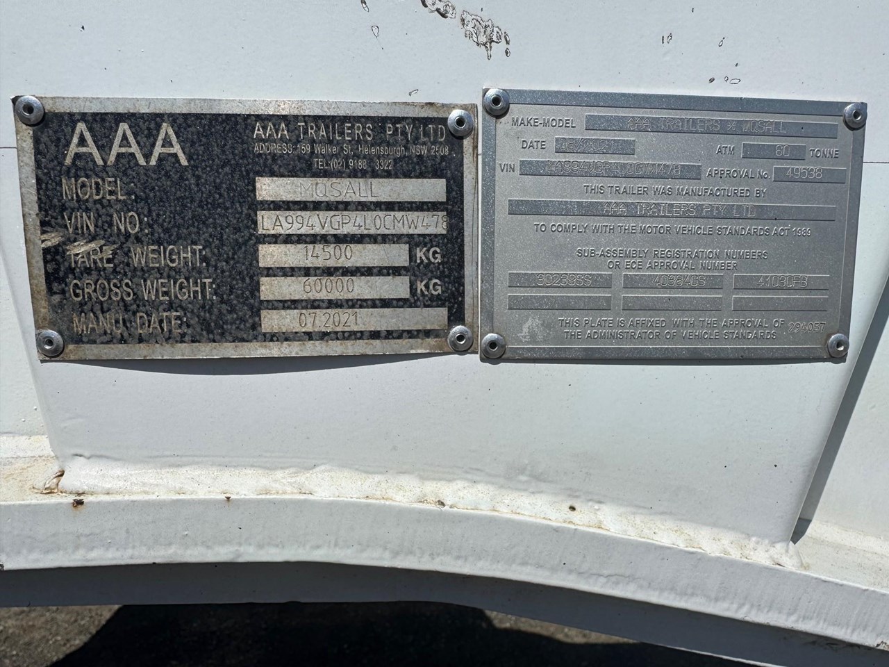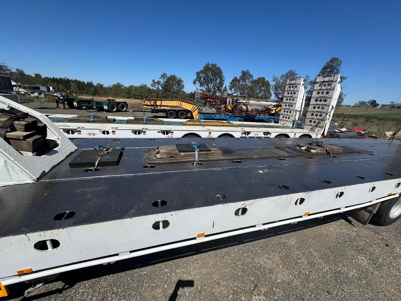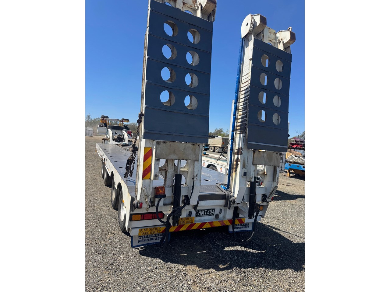 AAA Quad Axle Deck Widening Low Loader, Bi-Fold Ramps, Diesel Power Pack, 11m Clear Deck, Dolly Neck with Drop In 50mm & 90mm King Pins, Extended to take 2x4 Low Loaded Dolly. 20foot Container Pins, K Hitch Axles and K Hitch Air Suspension. All new brakes, Pirelli 265x70x19.5 Tyres.