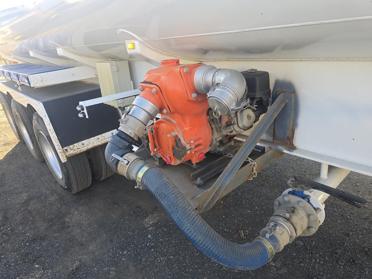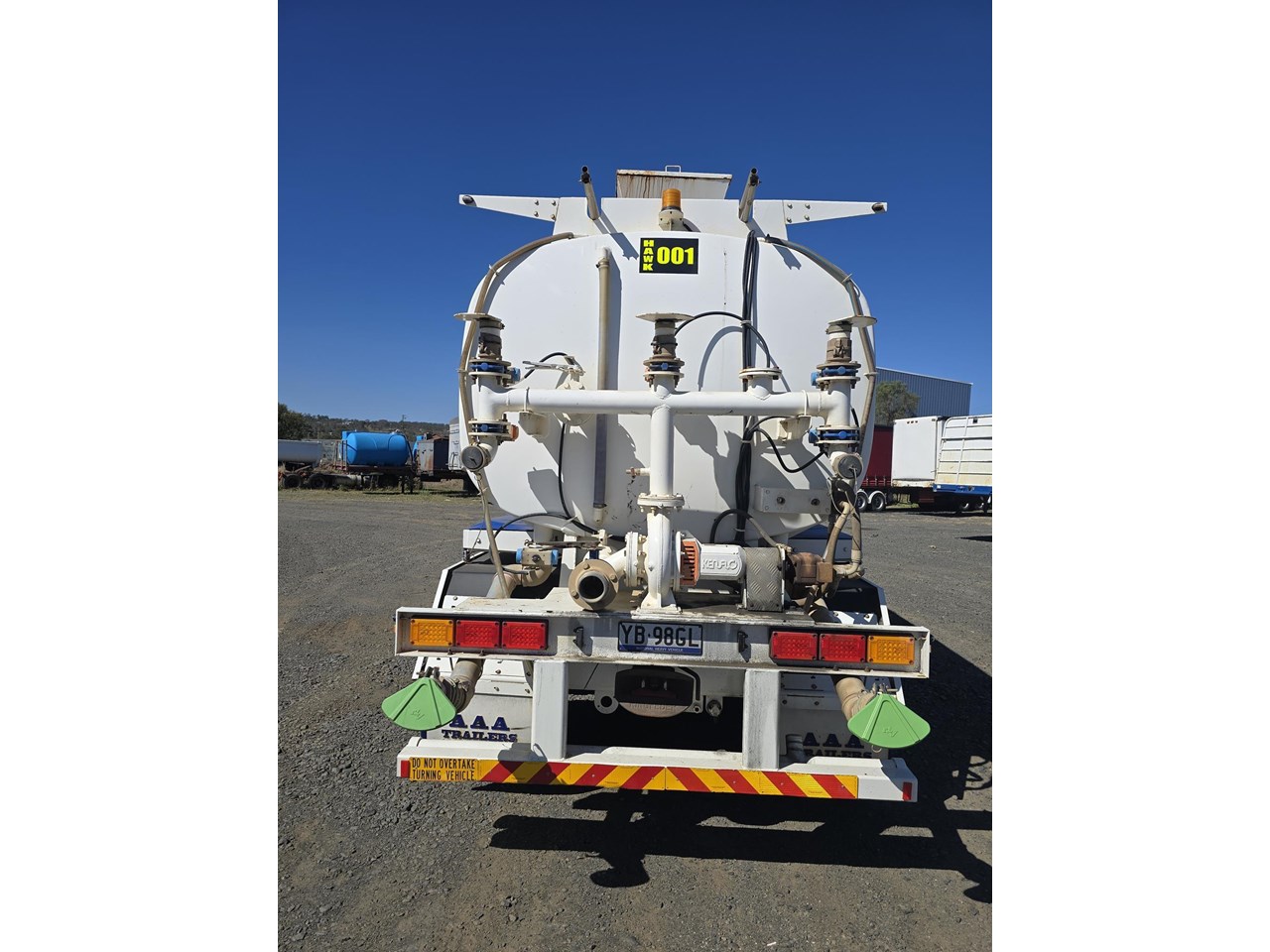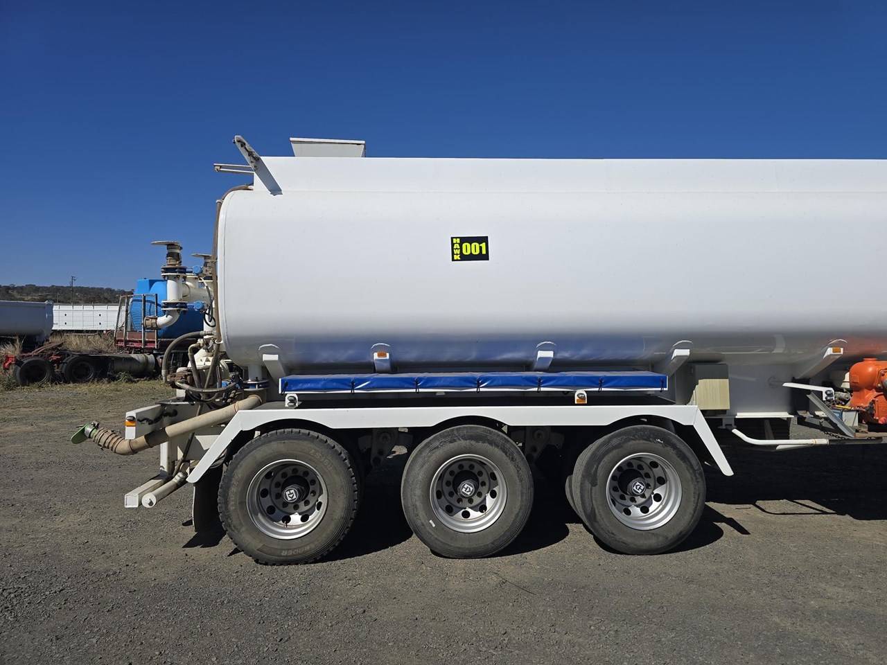 AAA Trailer, 12/2023 model, 32,000L Water Tanker, Triaxle Spring Suspension, Roadtrain lead, Radio Control remotes for sprays and controls, Hydraulic pump to support sprays and refilling as required, Petrol pump also included to support quicker fillups if needed., Trailer has done very little work since delivery.