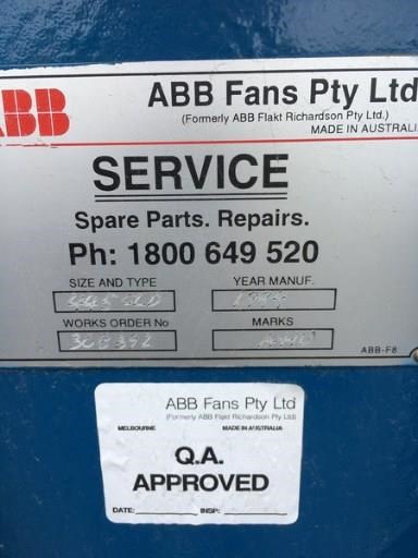 ABB Double inlet Fan.Model CLD 445.15000cfm low pressure.Outlet size 600 x 850mmNo motor fitted requires 5.5kw or bigger.