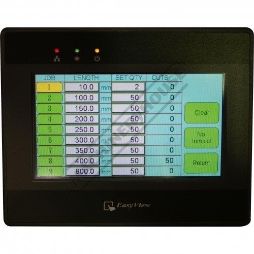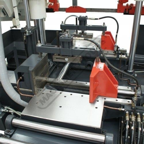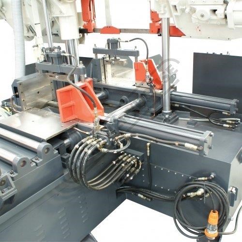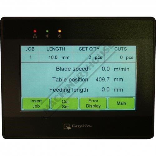 Fully automatic and intelligent HMI touch screen programmable NC control accepts many different job quantities and lengths complete with hydraulic vice clamping and hitch feed system