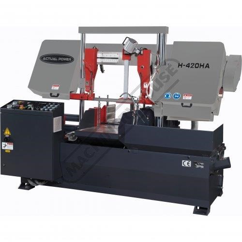 ACTUAL POWER H-420HA-NC NC Double Column Metal Cutting Band Saw - Automatic Hitch Feed Includes Inverter Variable Blade Speed Control, Auto Kerf Compensation, Auto Trim Cut, LCD Touch Screen, Hydraulic Vice Clamping & Hydraulic Downfeed Control 420 x 420mm (W x H) Rectangle Capacity