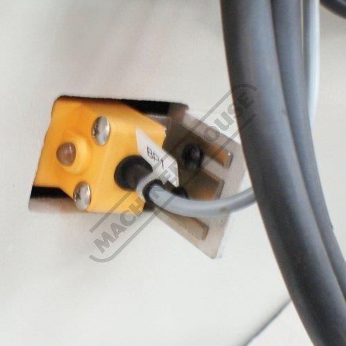 Idle wheel motion proximity switches shuts off machine if blade breaks or slips