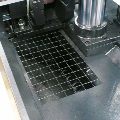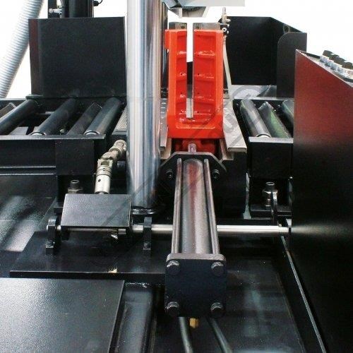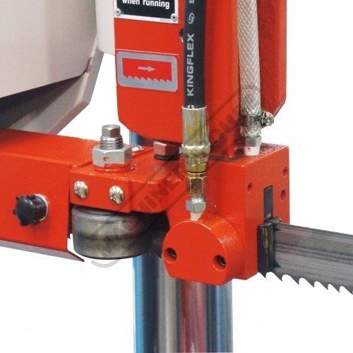 Hydraulic operated carbide blade guides with additional ball bearing guides provides superior accuracy and reduce friction for longer blade life