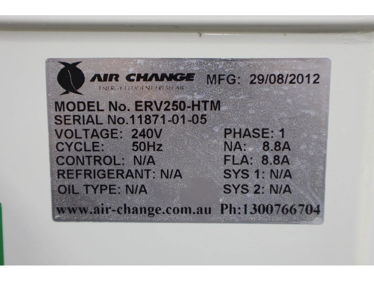 | Title | AIR CHANGE ERV250 ENERGY RECOVERY VENTILATOR |