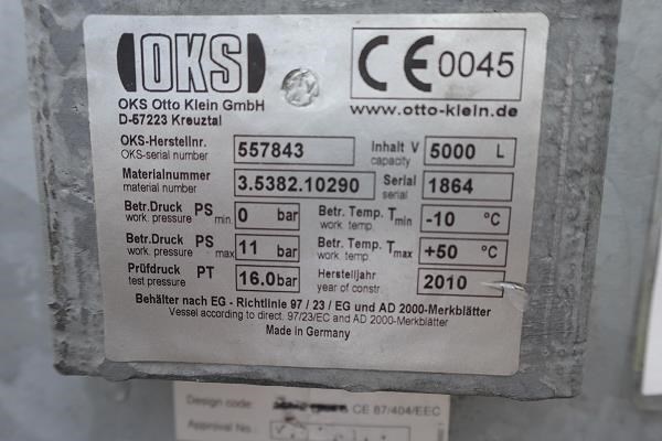 Registration #: 2960398, unit has side inspection manway and fitted with pressure relief valve.