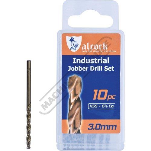 ALCOCK Ø3.0mm HSS Jobber Drill Pack - 10 Piece M35 Grade HSS with 5% Cobalt 135º Precision Ground Flute & Split Point