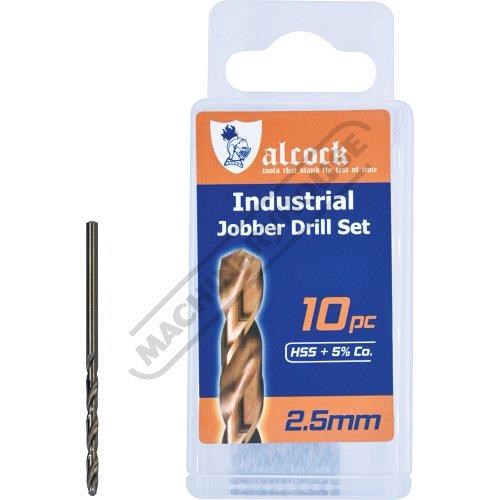 ALCOCK Ø2.5mm HSS Jobber Drill Pack - 10 Piece M35 Grade HSS with 5% Cobalt 135º Precision Ground Flute & Split Point