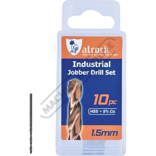 ALCOCK Ø1.5mm HSS Jobber Drill Pack - 10 Piece M35 Grade HSS with 5% Cobalt 135º Precision Ground Flute & Split Point