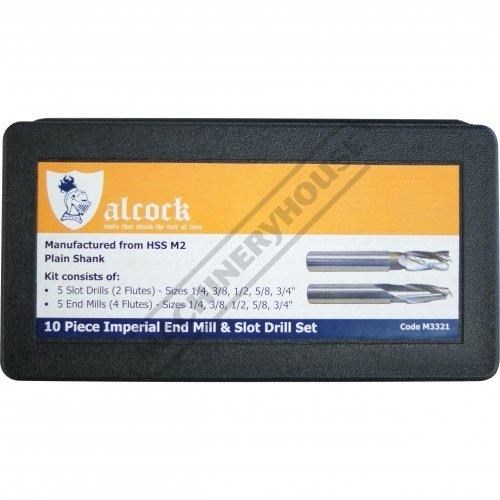 ALCOCK Imperial HSS Slot Drill & End Mill Set - 10 Piece Ø1/4`` - Ø3/4``