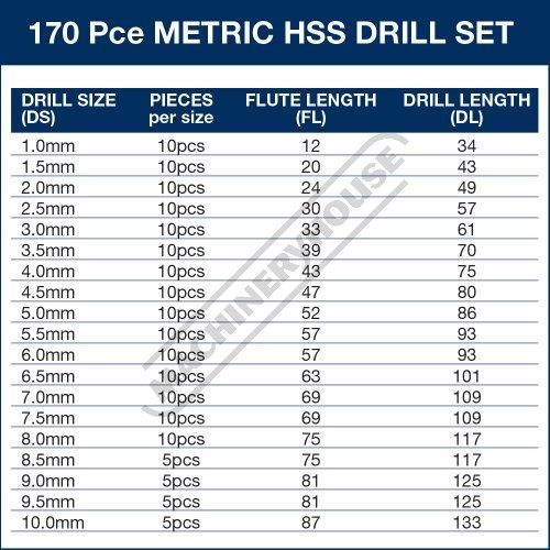 170pc kit - (1.0 - 10.0mm in 0.5mm increments)
