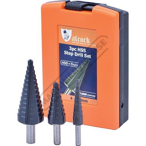 ALCOCK HSS Sheet Metal Step Drill Set - 3 Piece Ø4 - Ø30mm