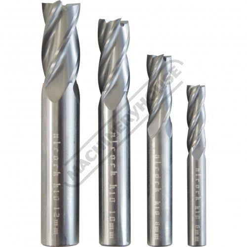 ALCOCK Metric Industrial Carbide End Mill Set - 4 Piece Ø6, Ø8, Ø10, Ø12mm