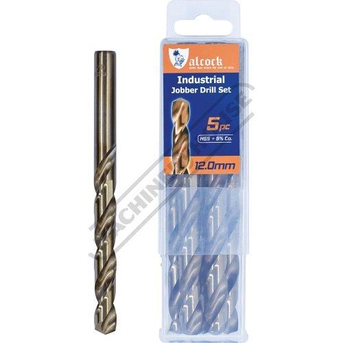 ALCOCK Ø12.0mm HSS Jobber Drill Pack - 5 Piece M35 Grade HSS with 5% Cobalt 135º Precision Ground Flute & Split Point