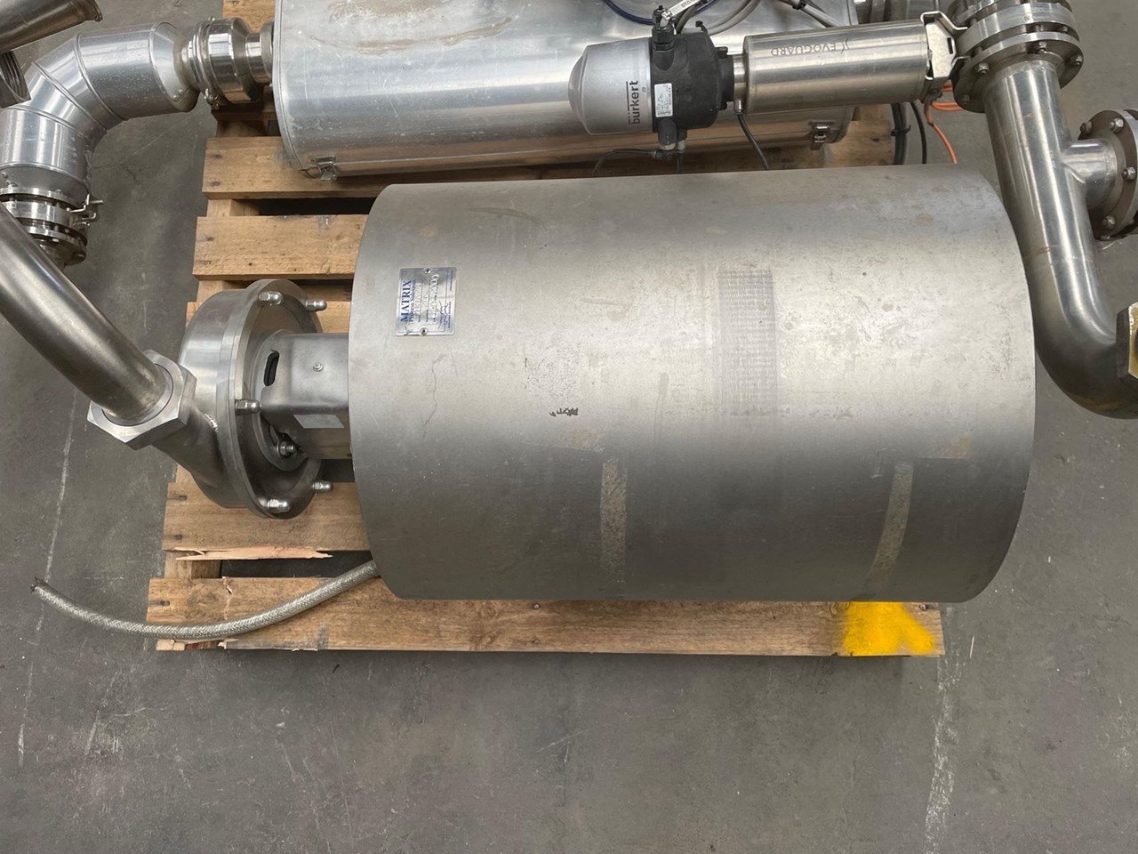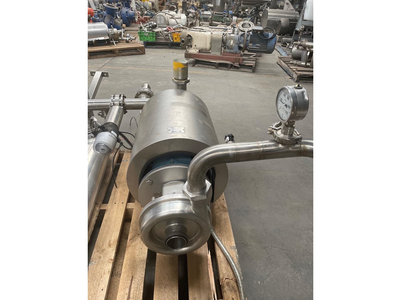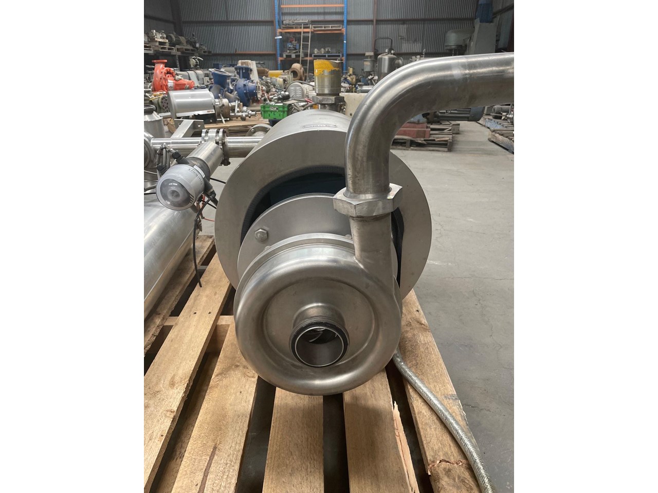 Alfa Laval Centrifugal pump, with a 11kw motor and 2900rpm. 2 -1/2 inch inlet and outlet and a 205mm impeller. Approx: 75.0 Head (m) Capacity: 40.0 (m3/h) Inlet Pressure: 10 bar Temperature: 140 C (EPDM) Applicable Duties: Milk, Milk/Cream Pasteurization, Cultured Milk, Whey, Ice cream pasteurization, wort, beer, beer pasteurization â€" feeder, juices, drinks, wine, drinks with pulp/fibres, sugar dissolving, final syrup, low and high viscous products, vegetable oil, water, CIP feed, carbonisation.