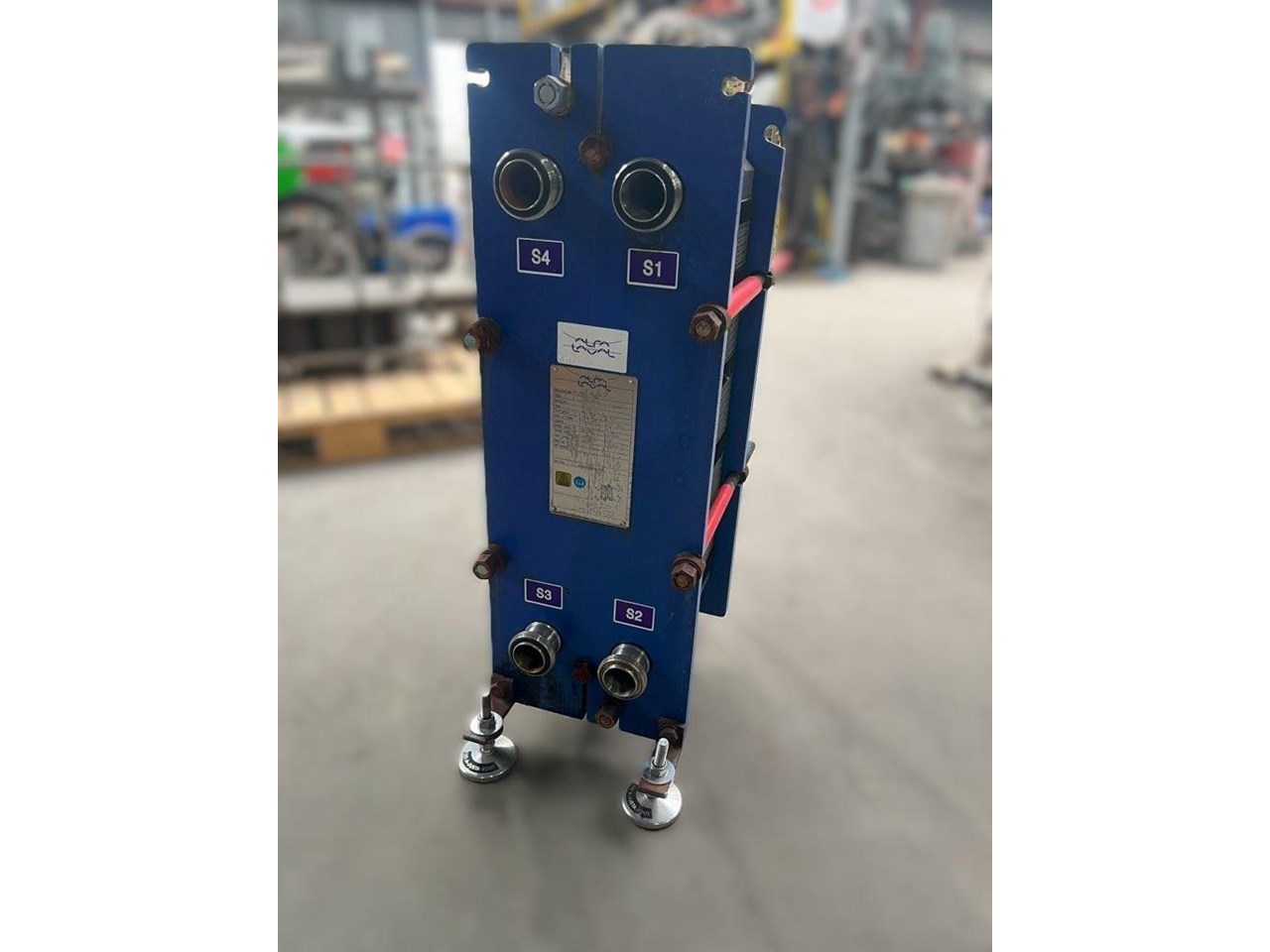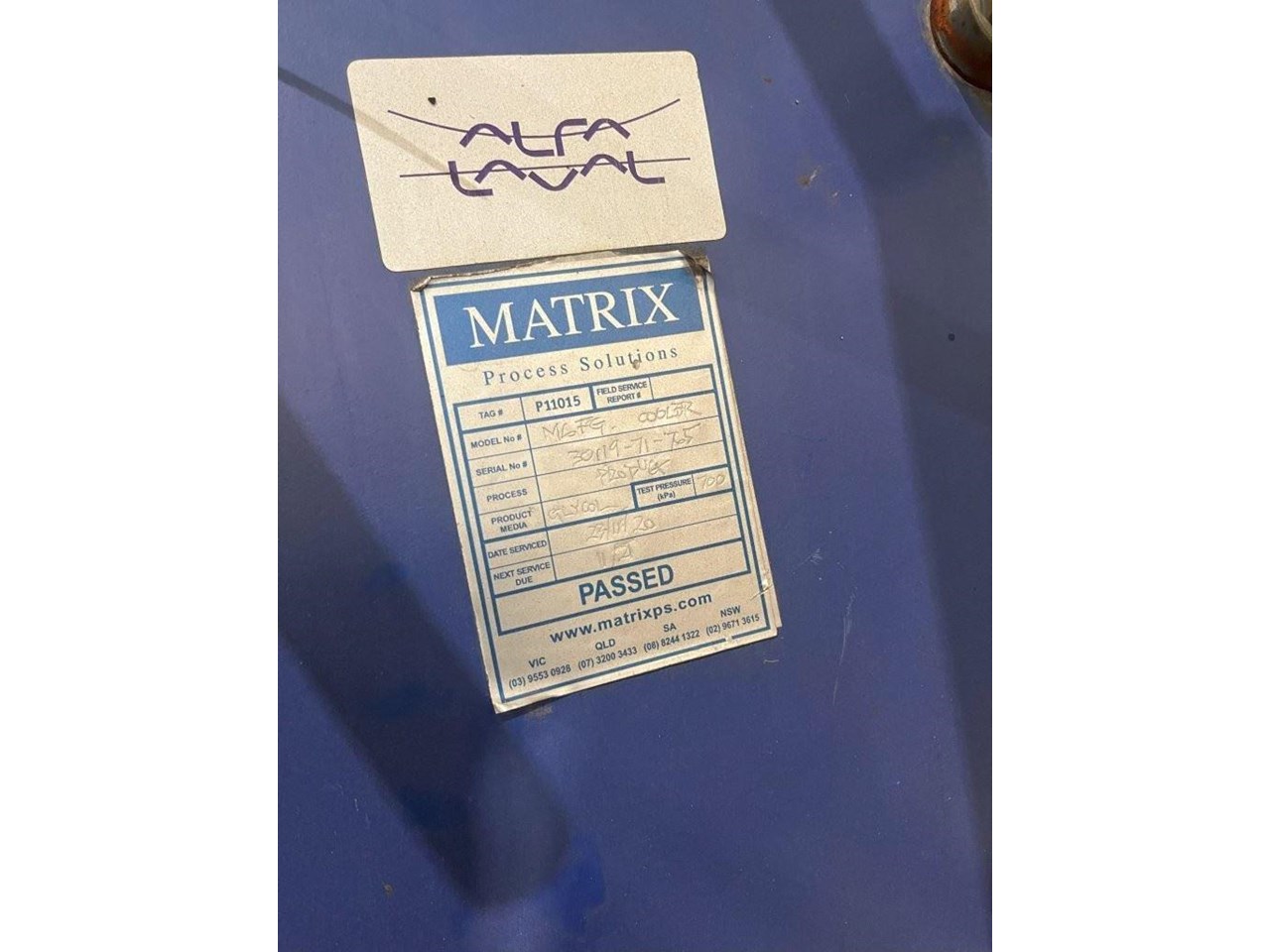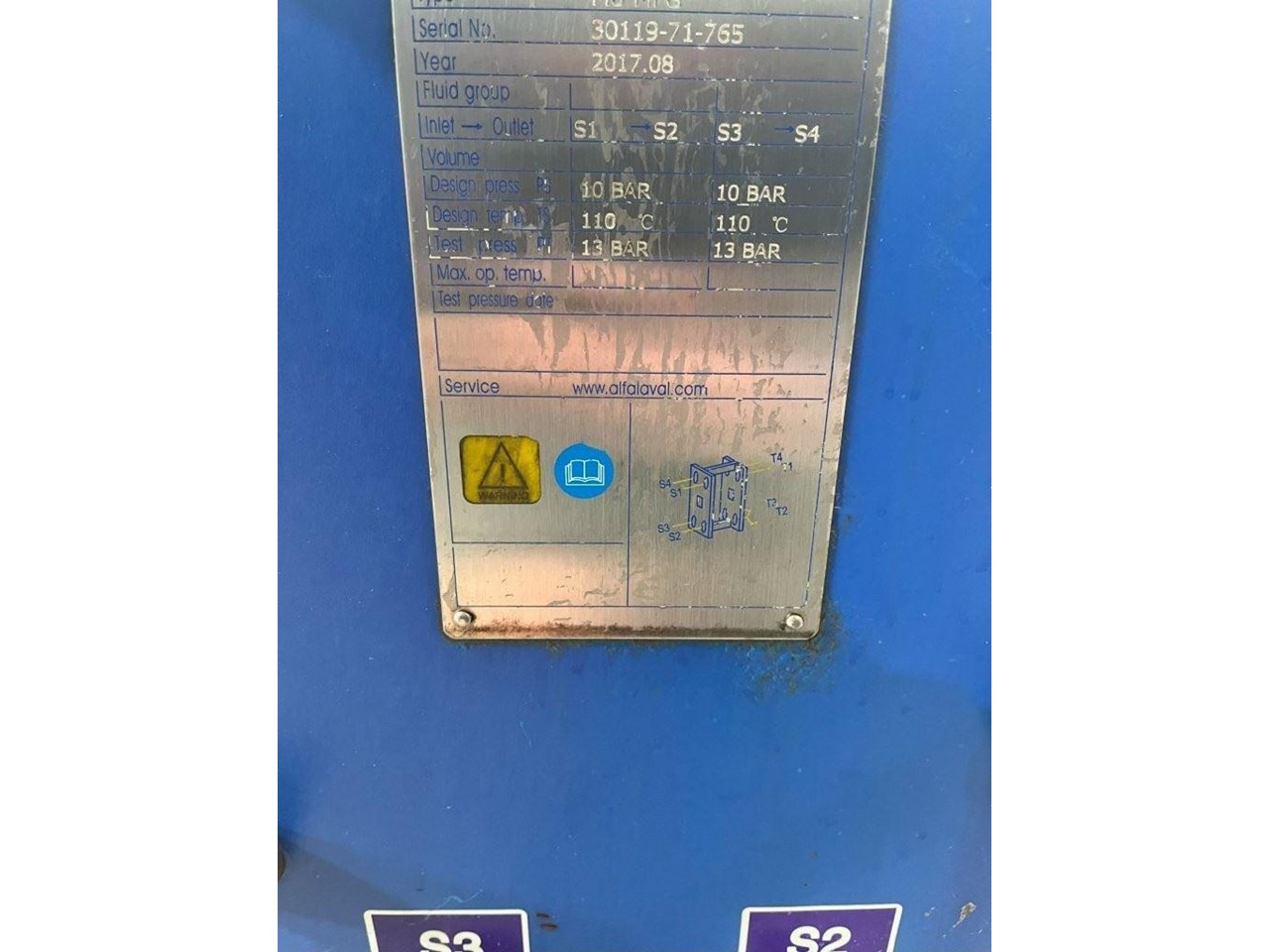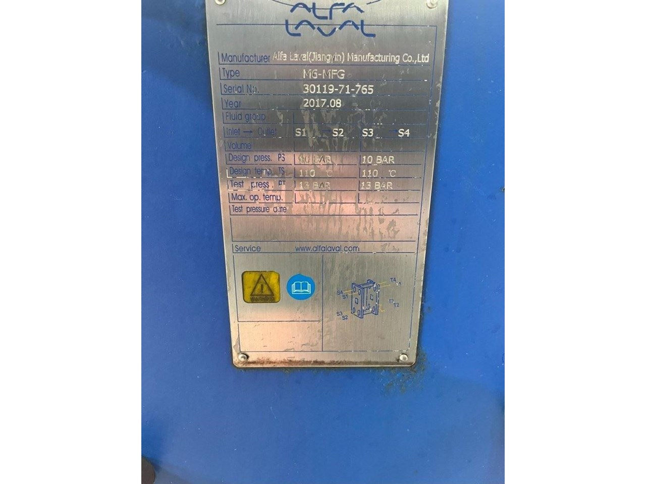 Alfa Laval - Plate Heat Exchanger. Type: M6-MFG Design Press: 10 BAR Design Temp: 110C Test Press: 13 BAR 2 Inch fittings Unit is in good condition.