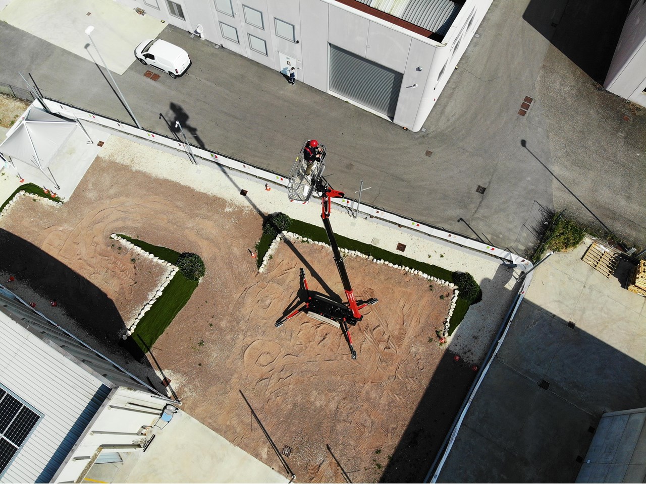 Self-Propelled Skilled System - SPS, a technology that allows the platform to be used on longitudinal slopes of up to 10° and lateral slopes of up to 5° in complete safety without the use of outriggers;
