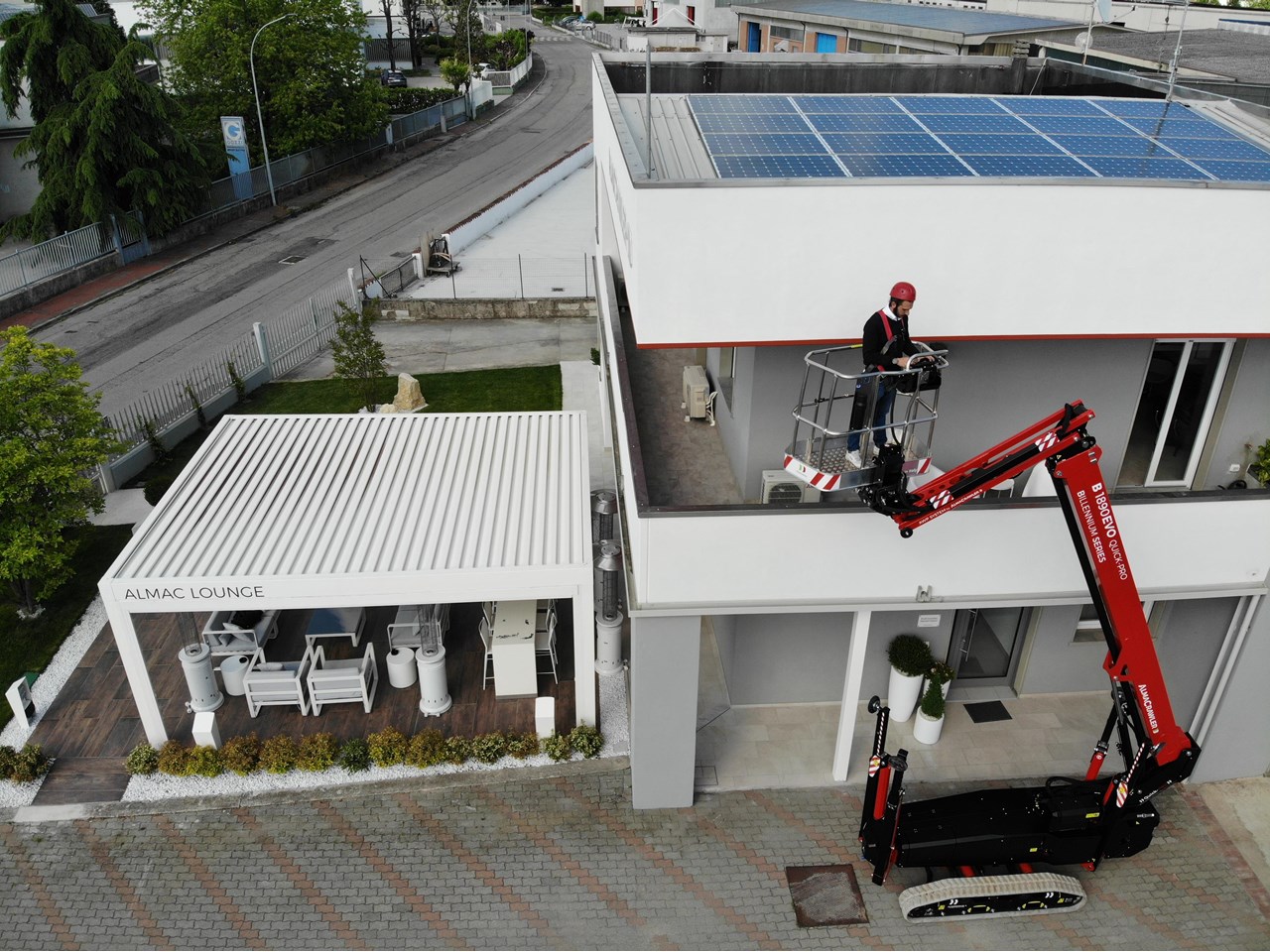 Equipped with automatic variable stabilization, the B1890 QUICK-PRO LTH is a new platform designed and manufactured by AlmaCrawler for the BT LINE. With this new line of machines, among which the B1890 QUICK-PRO LTH, AlmaCrawler offers to the professionals of the sector and to the market a new type of self-propelled tracked aerial platforms, which are born from the combination of the peculiar characteristics of the self-propelled wheeled aerial platforms and of the stabilized tracked aerial platforms.