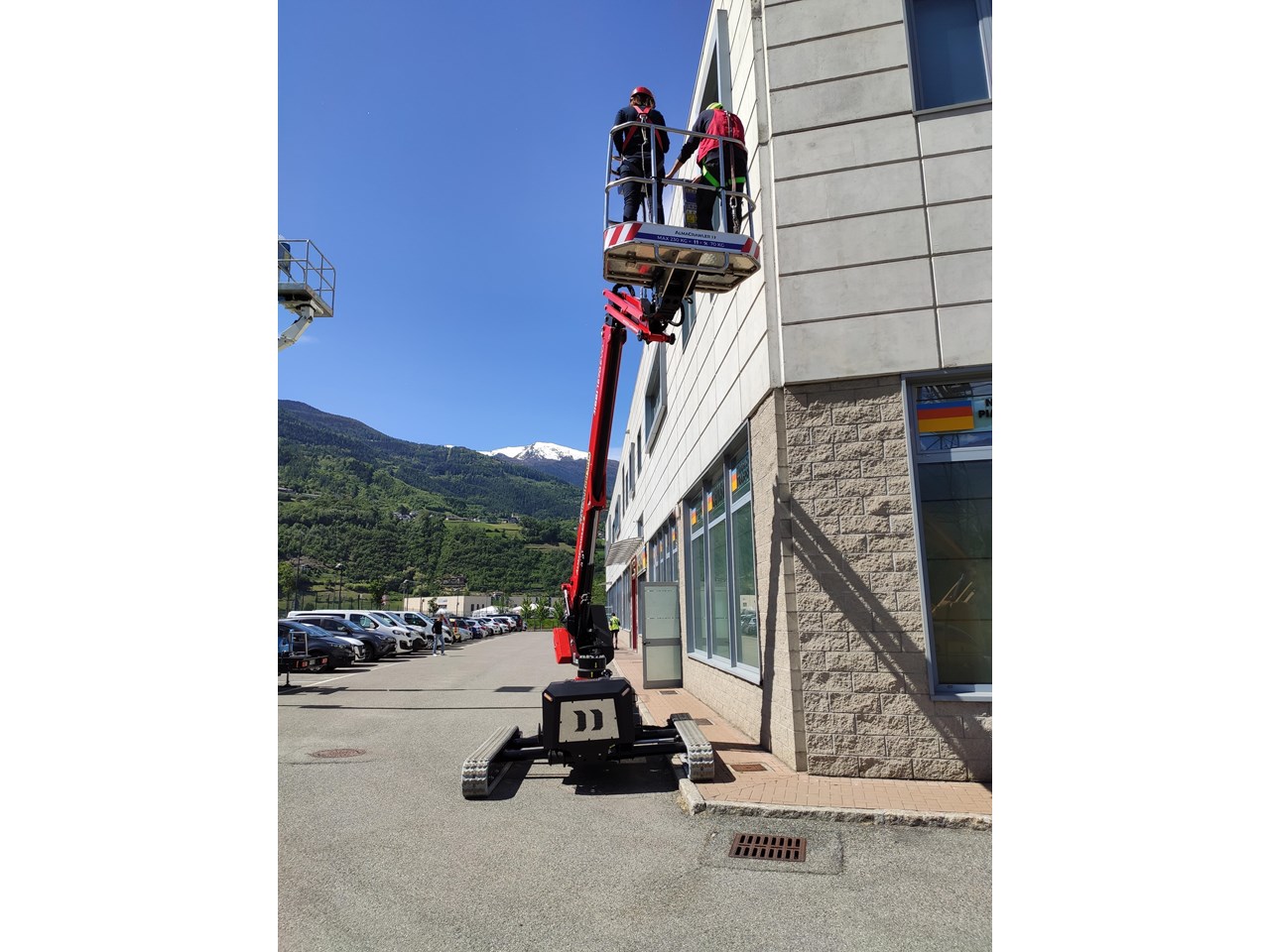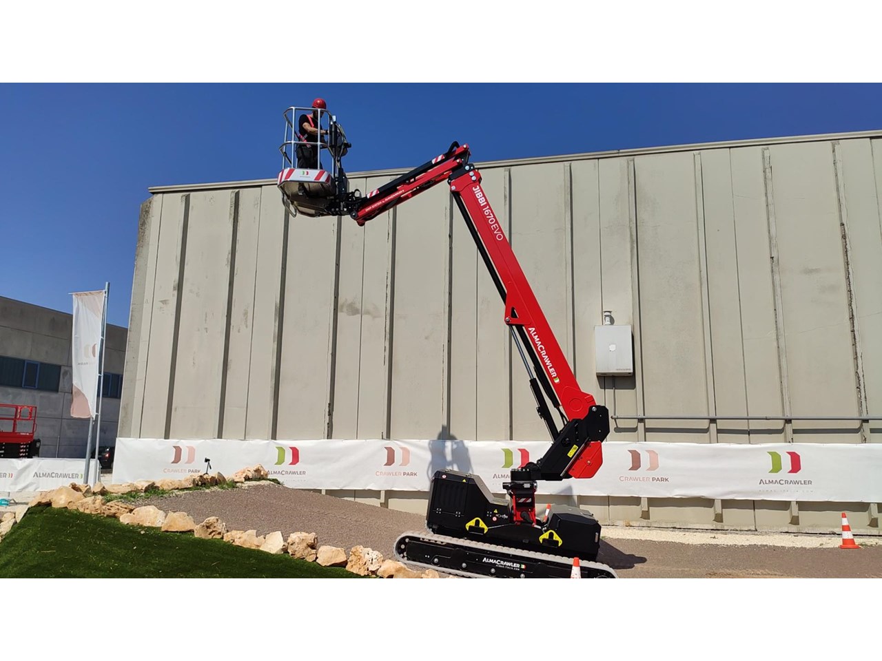 Thanks to the consolidated dynamic and proactive levelling system that characterises the Almac aerial platforms, with the JIBBI 1670 LTH crawler lift the operator can work safely and confidently on uneven ground and in areas with steep slopes up to 22° (40%) during movement operations in transportation conditions.