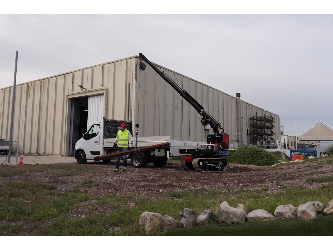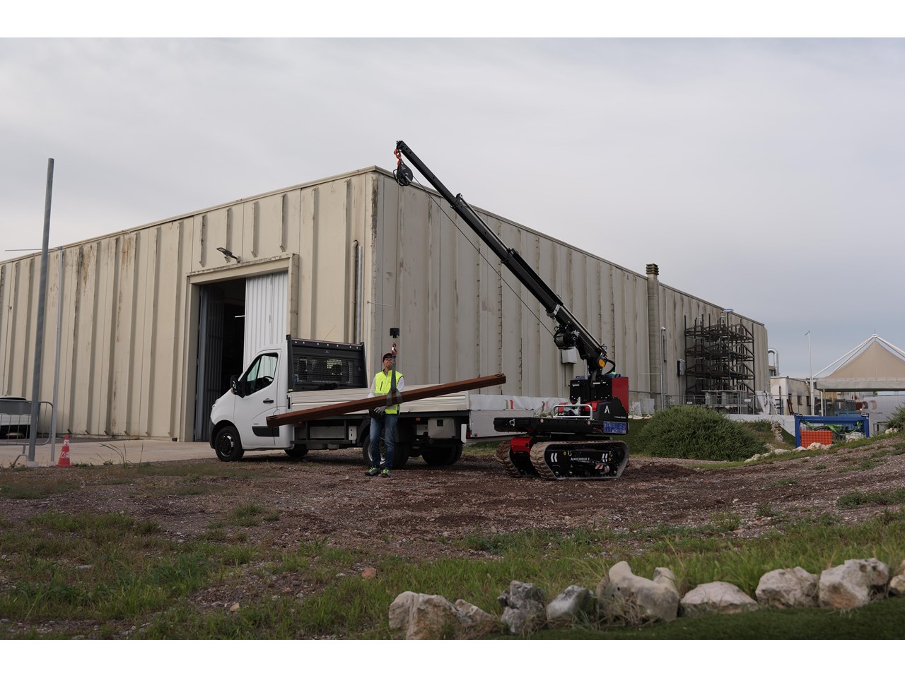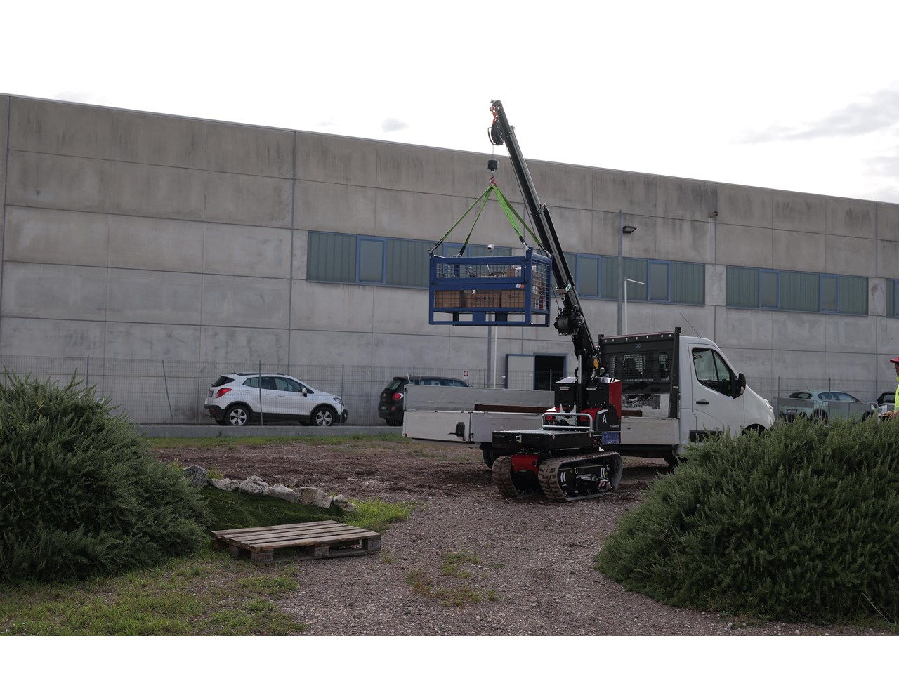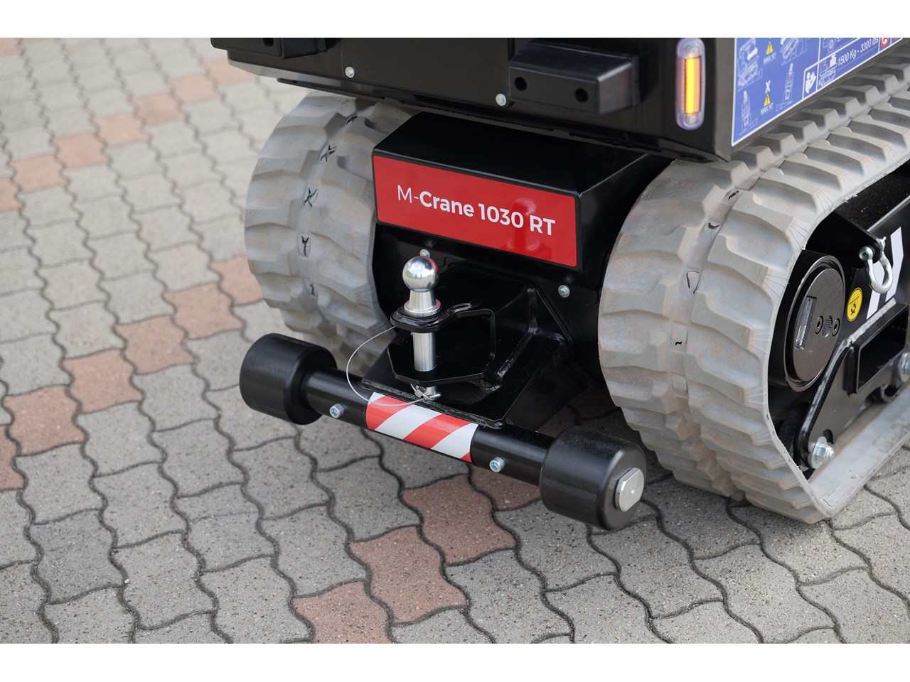 Equipped with a telescopic crane, it has a maximum lifting capacity of 990 kg and a variable outreach that can be used on slopes up to +/-10° longitudinal and +/- 5° lateral. The M-Crane 1030 RT, with a maximum capacity of 1500 kg, can handle a wide range of loads, making it a versatile solution for a variety of material handling needs.