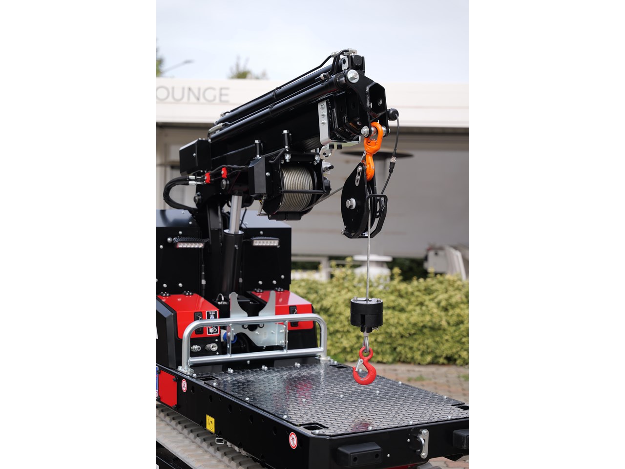 The M-Crane 1030 RT is a powerful and versatile crawler carrier equipped with a 990 kg maximum capacity Crane. With a ground clearance of a good 170 mm, can be used in various heavy-duty applications both indoors and outdoors. Full electric drive, it has class-leading electric drive with two super quiet AC electric motors 5.3 kW each (rated IP67), and features three power management configurations: