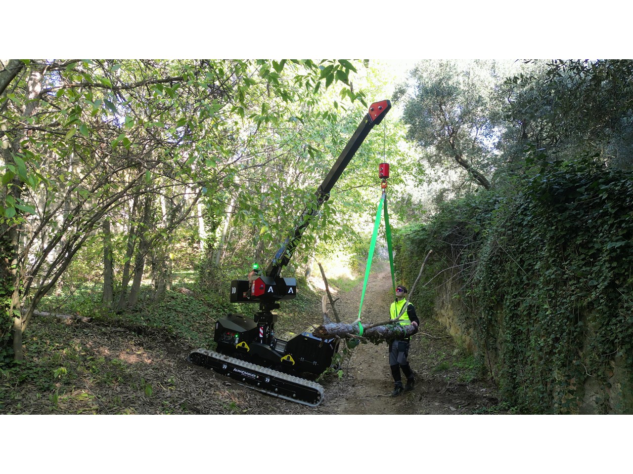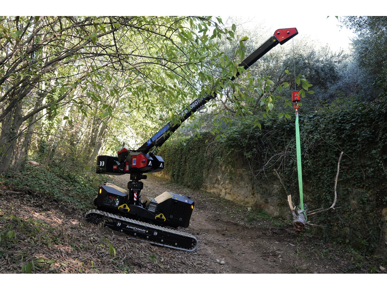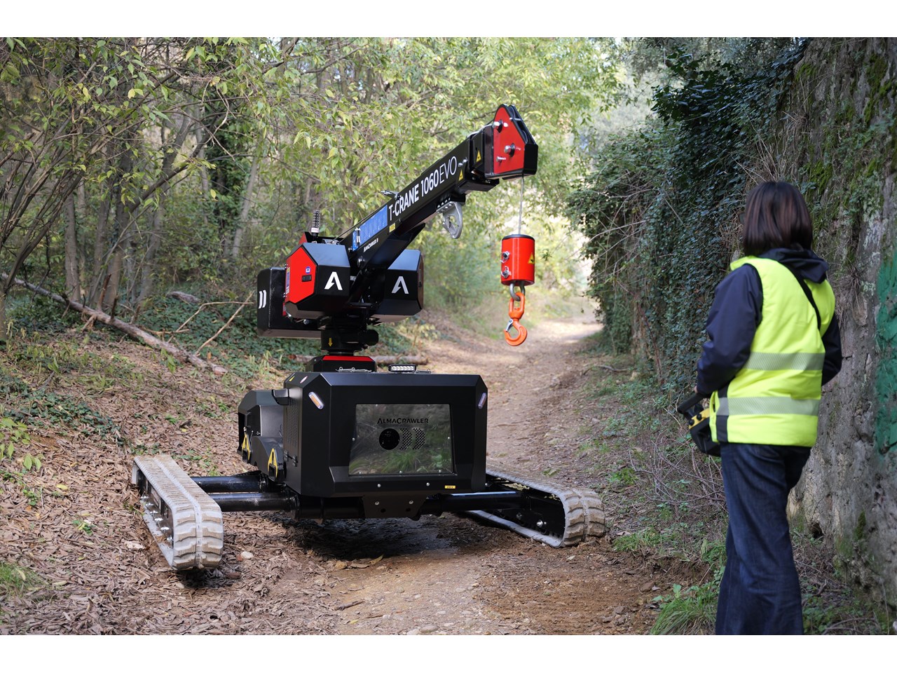 The first pick&carry mini-crane with AlmaCrawler self-levelling technology, available either with a Yanmar engine or a full-electric 300Ah Lithium battery pack.