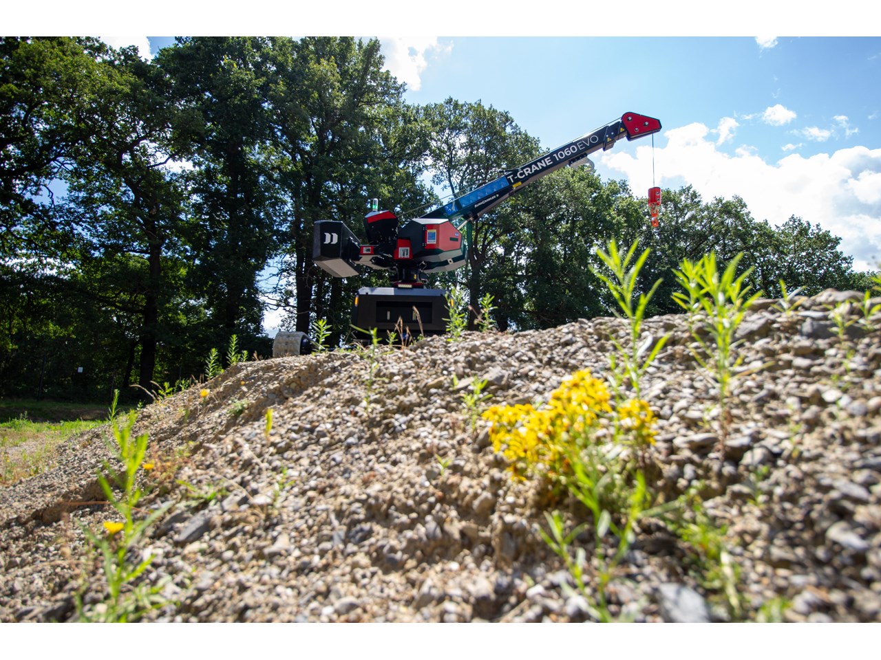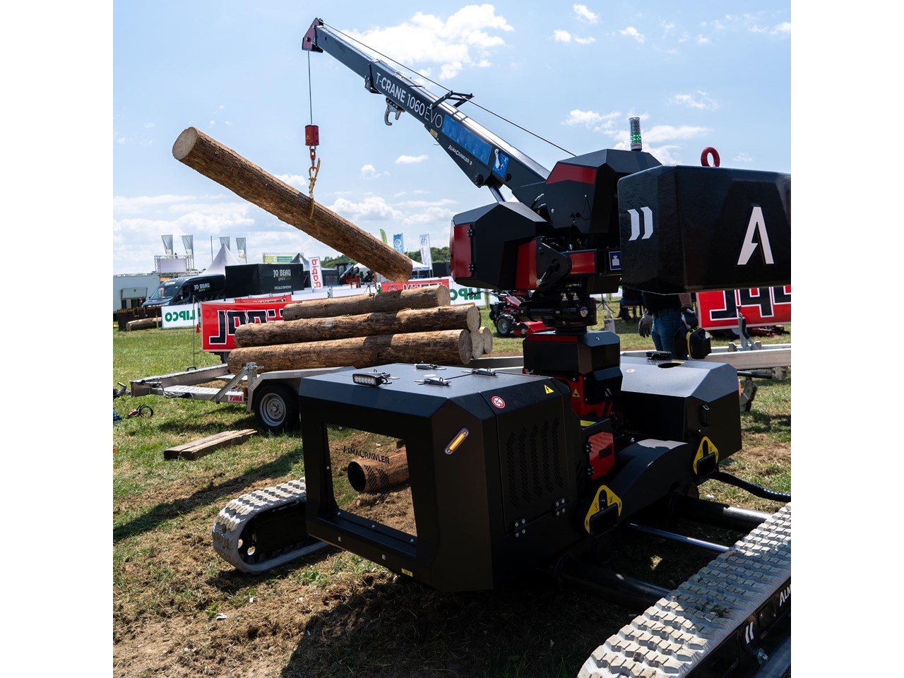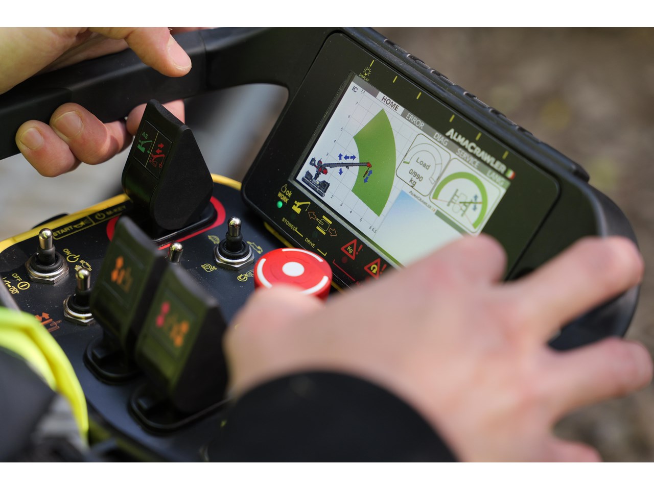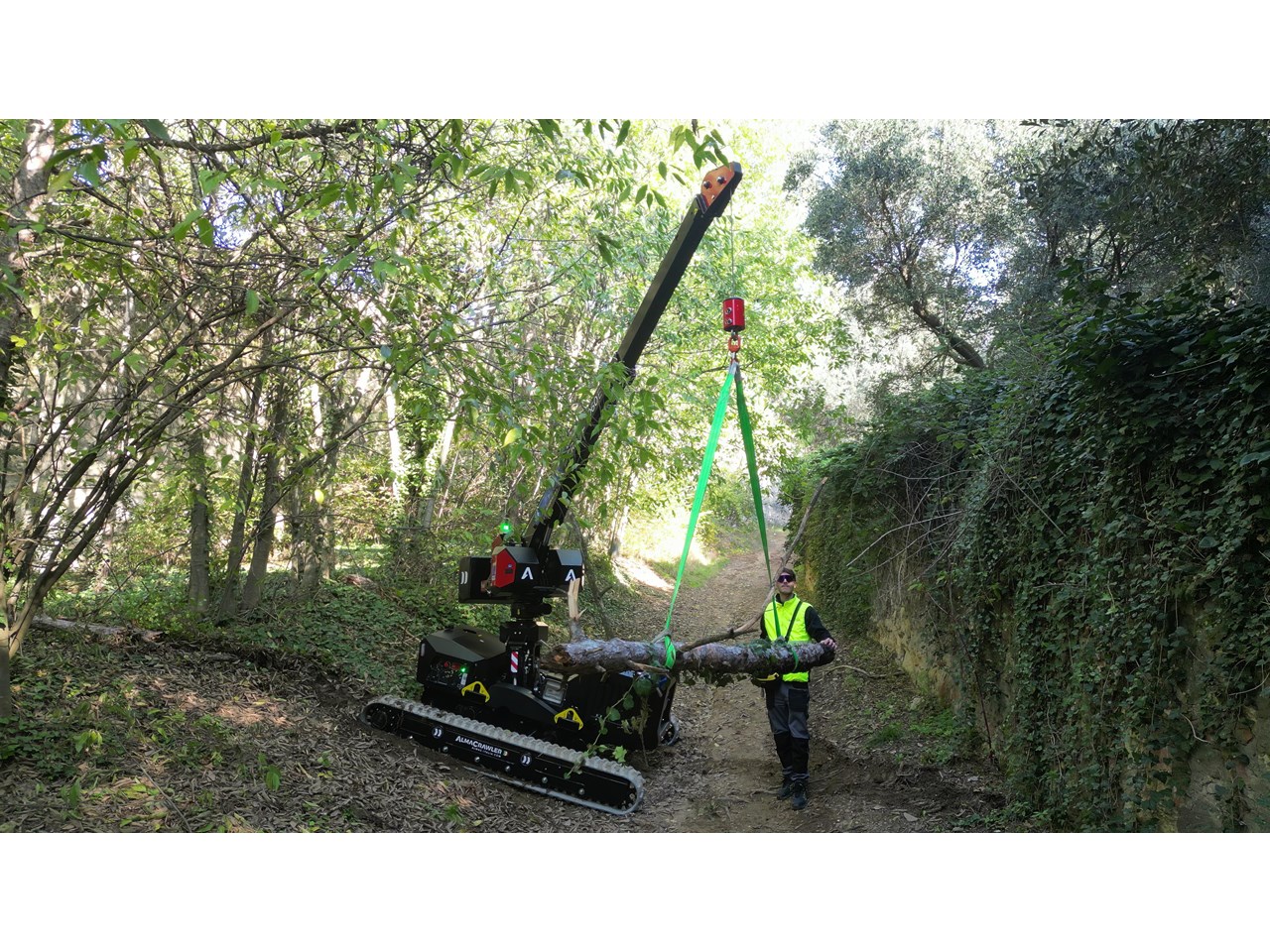 The first pick&carry mini-crane with AlmaCrawler self-levelling technology, available either with a Yanmar engine or a full-electric 300Ah Lithium battery pack.