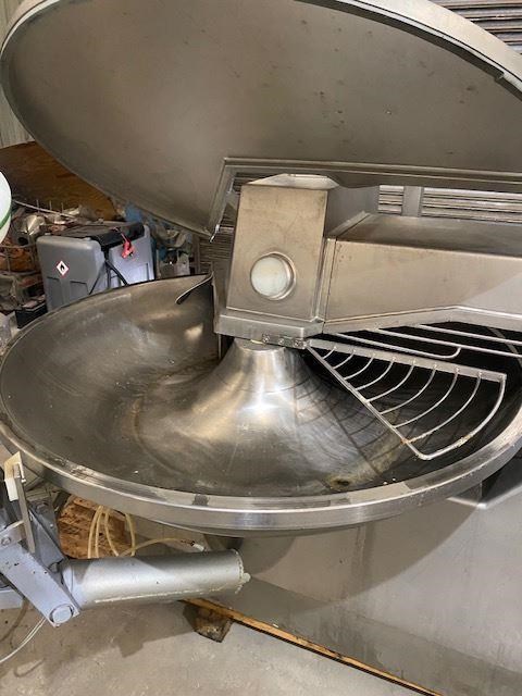 200 litre stainless steel bowl cutter Specification Make : HOEGER ALPINA Model : 200 litre stainless steel bowl cutter Condition : Used Description This Hoegger Alpina is a stainless bowl cutterwith a 200L SS bowl. 3 phase 415 Volts 50 hZ, 122 amps General Description Machinery body: solid construction all stainless steel with closed foundation bed and control device - Knife cap: implementation depends on the product: solid construction, made of stainless steel, air-operated - Degassing hood: Air operated, made of stainless steel with slot of addition - Cutters rotary speed: variable - Rate of stirring: 2 speed mixing bowl - Cutter's bowl: made of stainless steel, with infinite speed rate of rotation control , 3 speeds - Unloader: Pneumatically-turned - All manual controls - Automatic Shutdown System: designated time and bowl rotary speed.