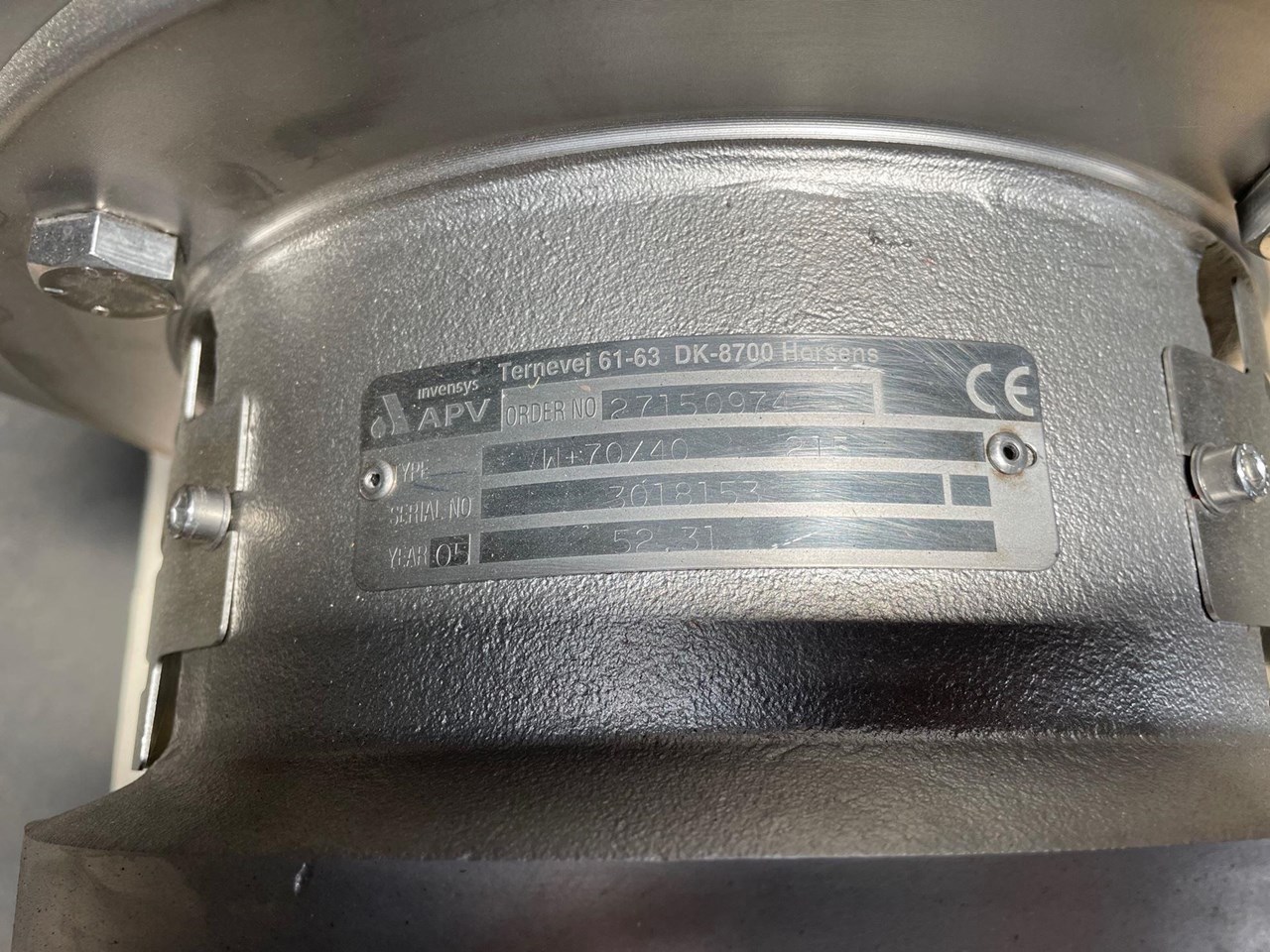 Reconditioned sanitary APV W 70/40 centrifugal pump, with a inlet of 65mm and a outlet of 38mm this pump has a max capacity of 44m