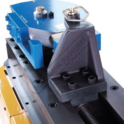 Accepts a rotary positioning table available from in several lengths to achieve accurate bends on varying planes