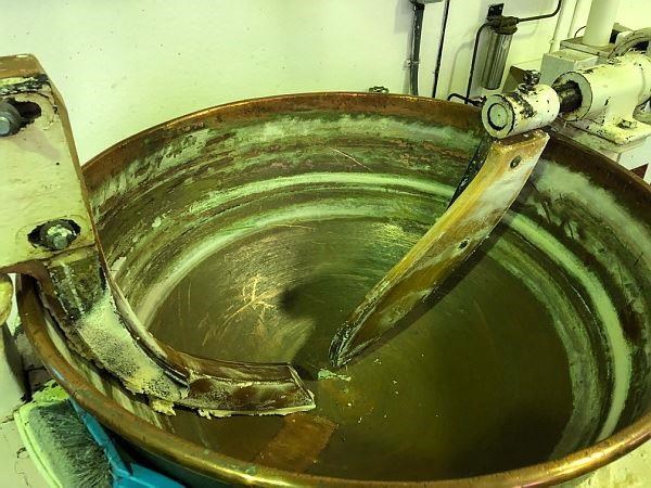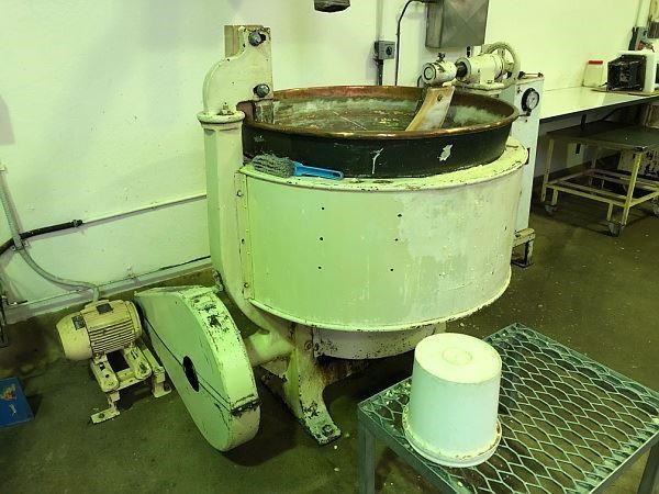 Marzipan Copper Mixing Pan 150kg capacity Made by: Baker Perkins Jacketed copper pan with 2 scrapers of hardwood. Simon Electric steam boiler, 415v Last used to make Marzipan but could be used to make other food products.