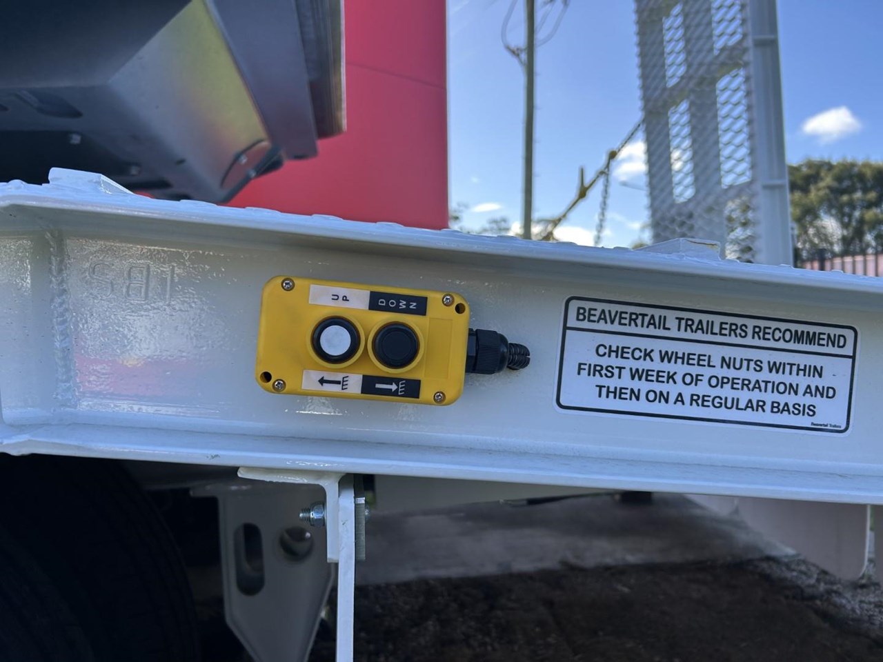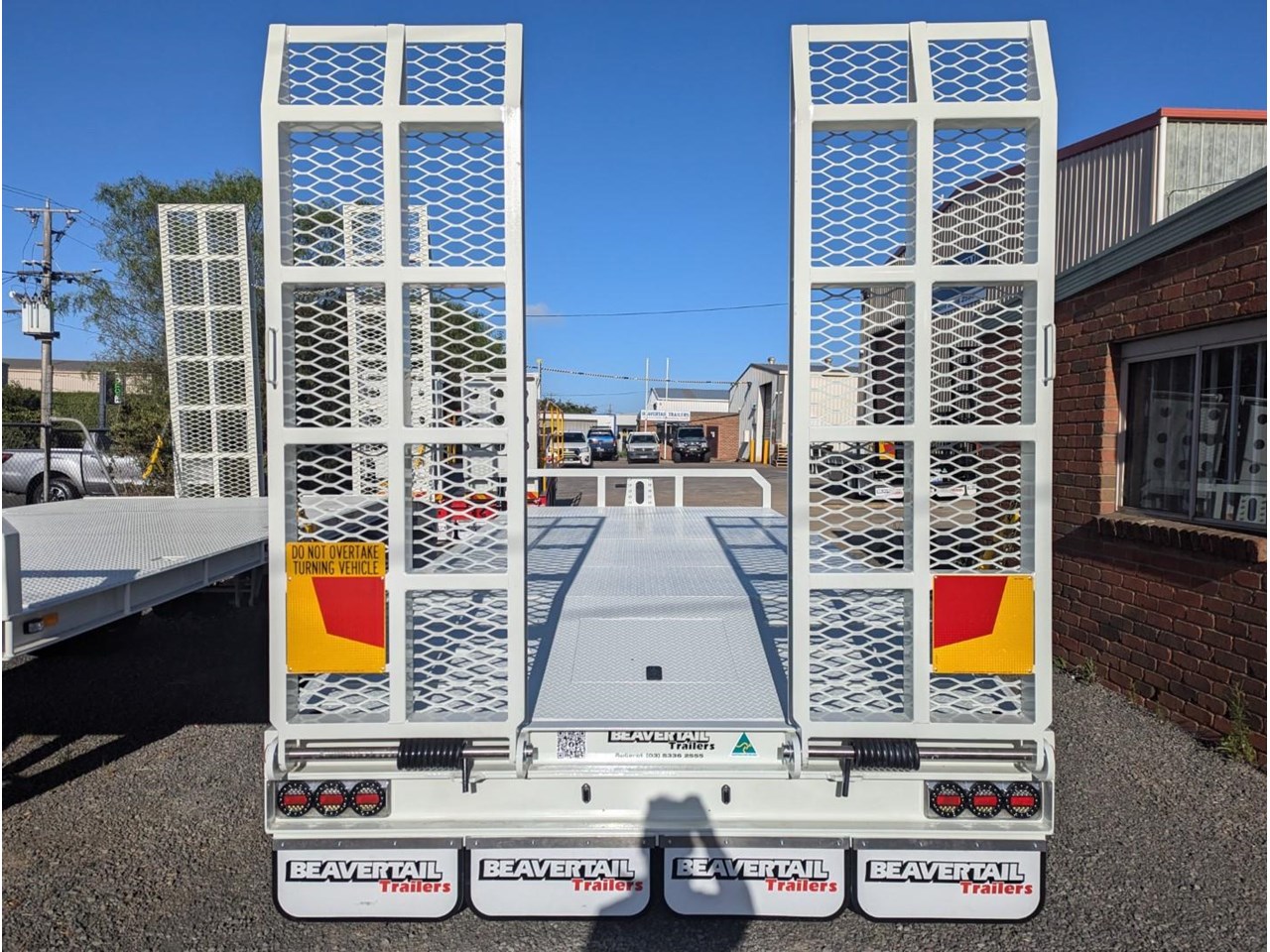 Ramps: Hydraulic double acting ramps operated by battery power pack, 2400mm long x 780mm wide, lined with mesh, painted with stainless steel ramp hinge bar, dogs and chains