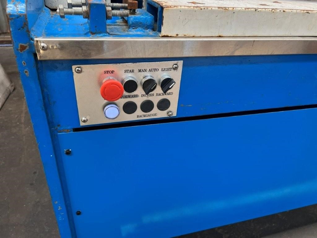 4mm mild steel capacity, manual back gauge and swing interlocked rear guard, away, max cutting strokes per min 22.