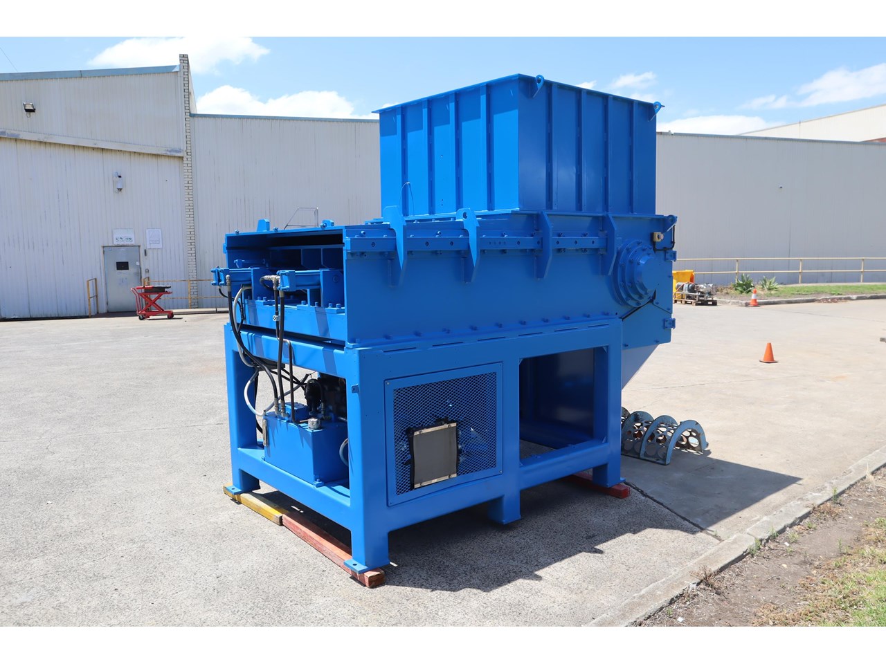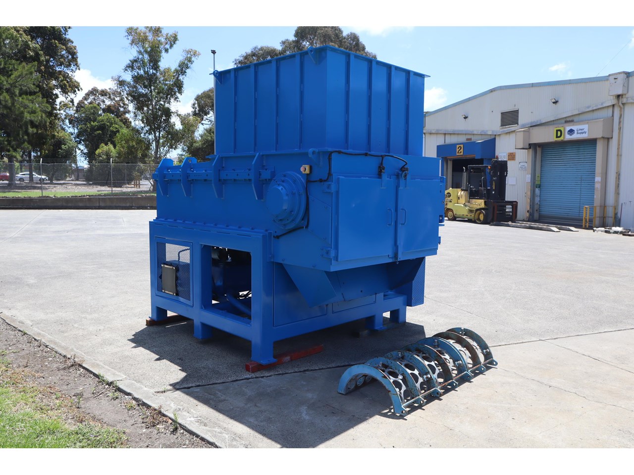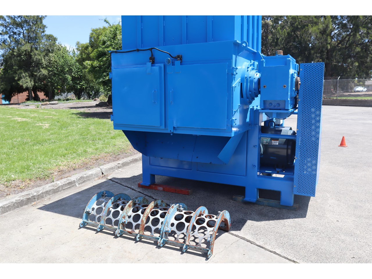 Industrial single shaft shredder fitted with a 125 HP Lincoln motor. This shredder is in excellent condition, has a large square hopper, and is designed for consistent material reduction across a wide range of industrial waste streams such as plastics, paper, wood, fiber, rubber, organic waste and non metallic materials etc.