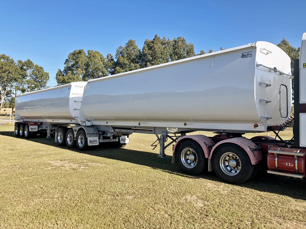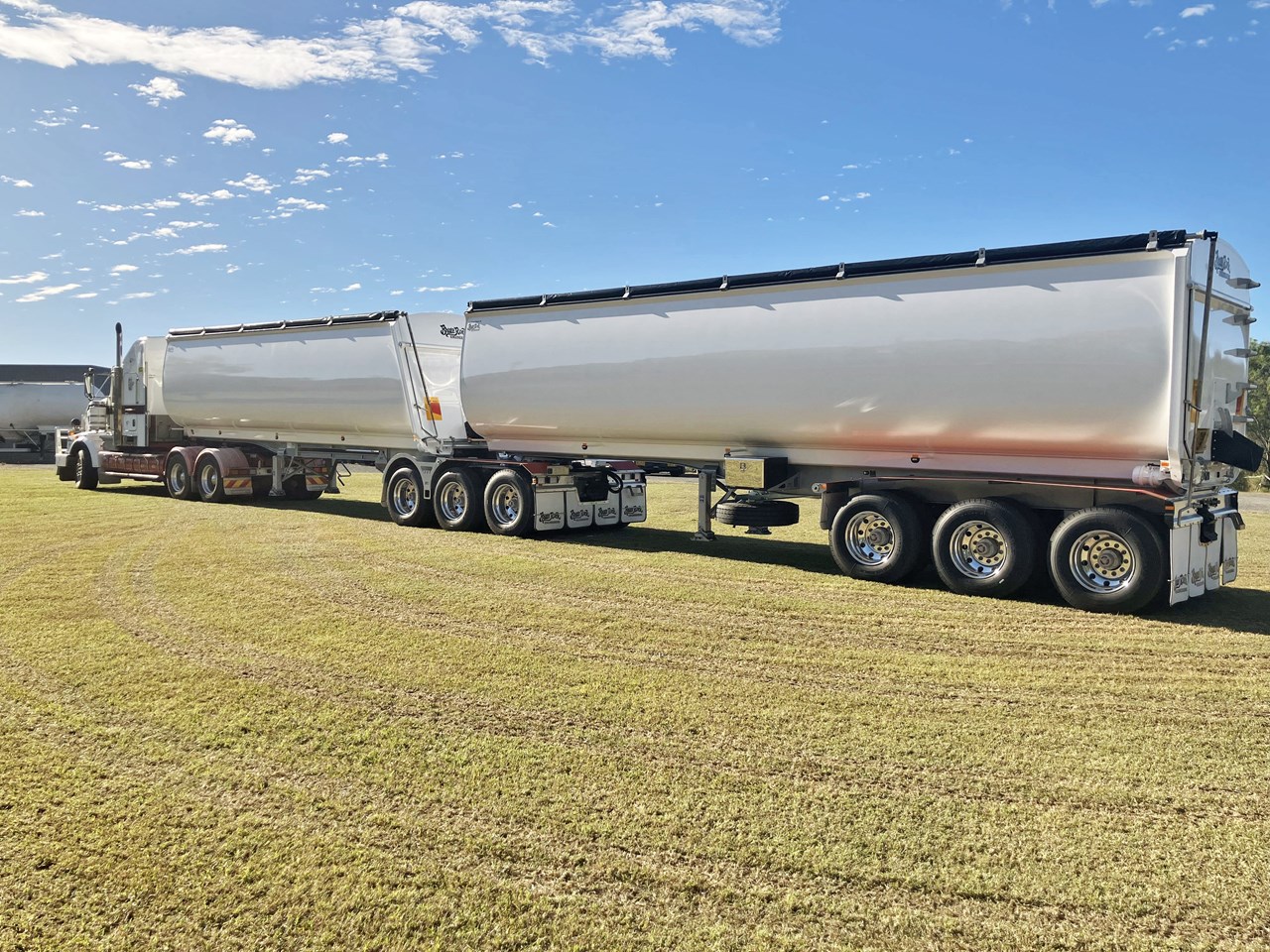 The spring grain harvest season is here be ready, IN STOCK now New Bulk chassis A-B slider tippers, tare app 14.2T for the unit,Hoist 50T, K-Hitch air bag, Aluminium wheels, roll tarps, weight gauges, combo 94 cubic, roll tarps, grain doors, grain shute, Port hole doors, Sider A section for R/T, 2 pin position rear trailer,