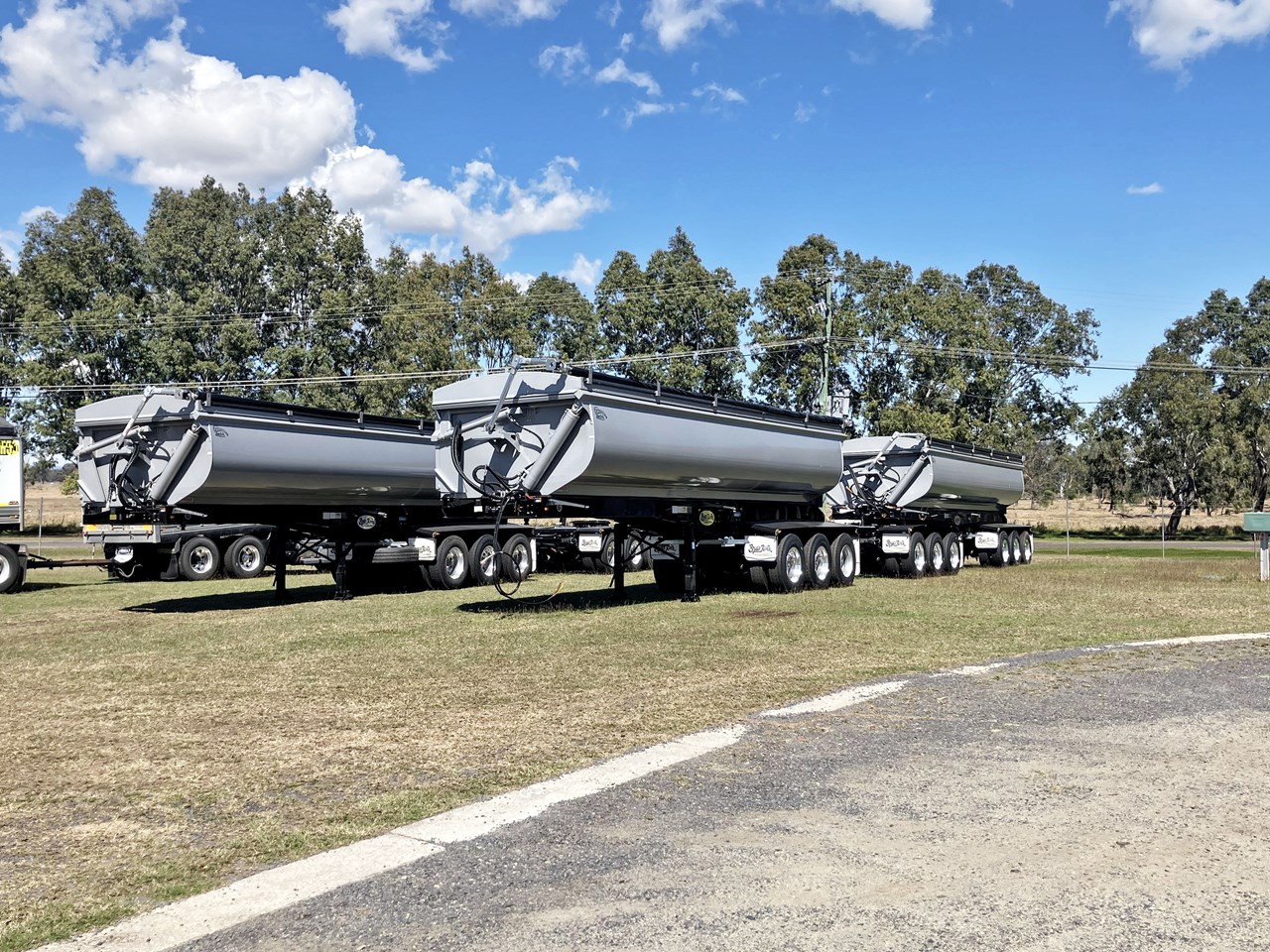 Start your New Year right with New Bruce Rock Engineering Triple Road Train side tipper unit, Hardox steel bin, K Hitch KI air bag suspension, Aluminium wheels, trailers and dollies PBS rated, enquire now if you need one, two, or three, Low tare weight, GET PAID FOR CARTING PAYLOAD BUY BRUCE ROCK ENG