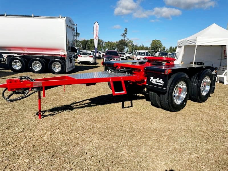 Sandwich style convertor Dolly, K Hitch axles con met, KI integrated air bag susp, 10 stud wheels, Joist greaseless turntable, Hydraulic hose lines suit any style of tipper operation, Low Tare.