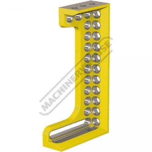 Versatile Four-Face Malleable Cast Iron Clamping Squares feature a total of 26 mounting holes over 3 surfaces for unlimited fixturing options. Mounting holes can be used to stop, locate, clamp, or square up stock at 90°. Available in left and right facing models, squares have a slim, space-saving profile and extra long mounting slot.