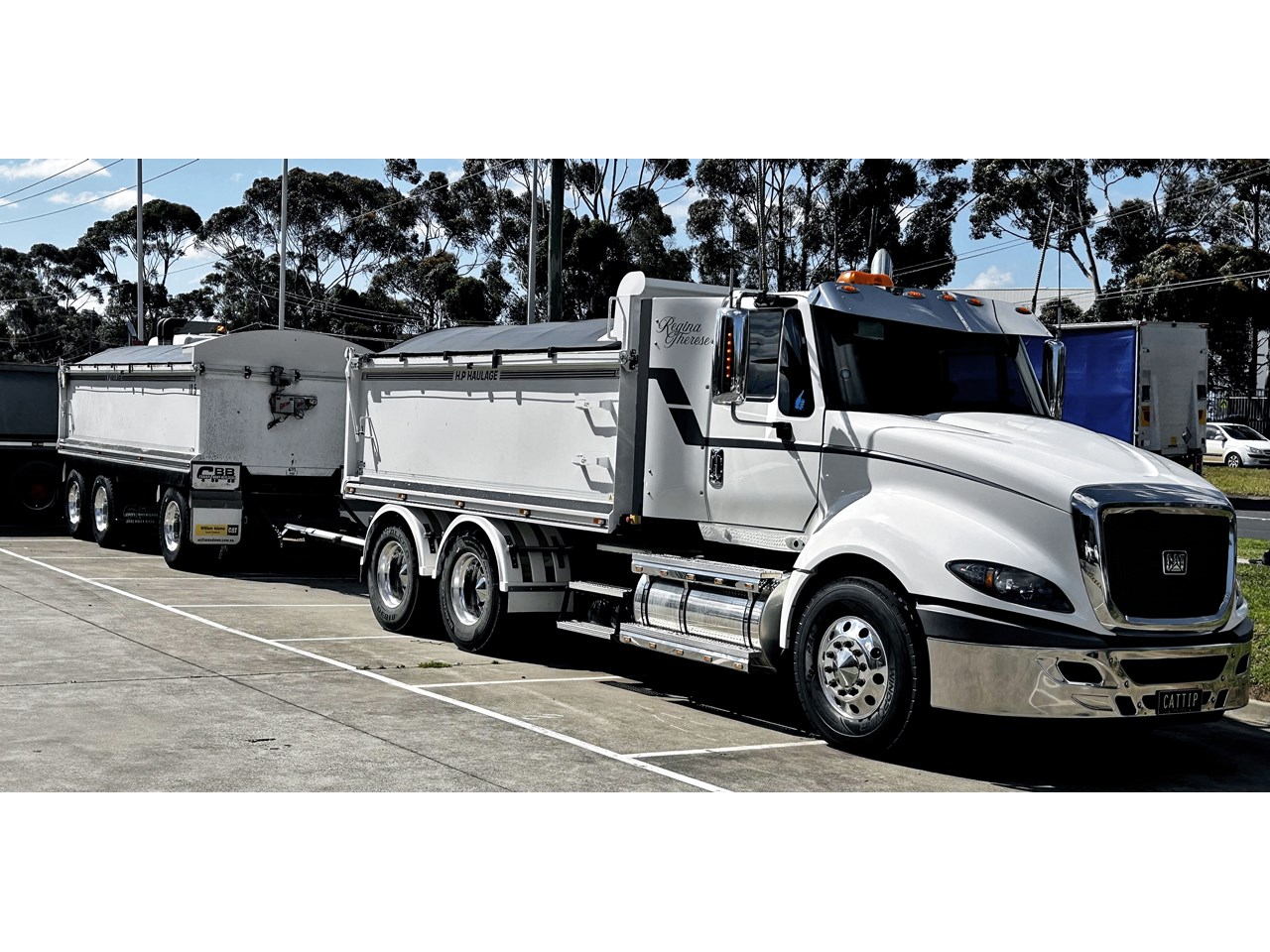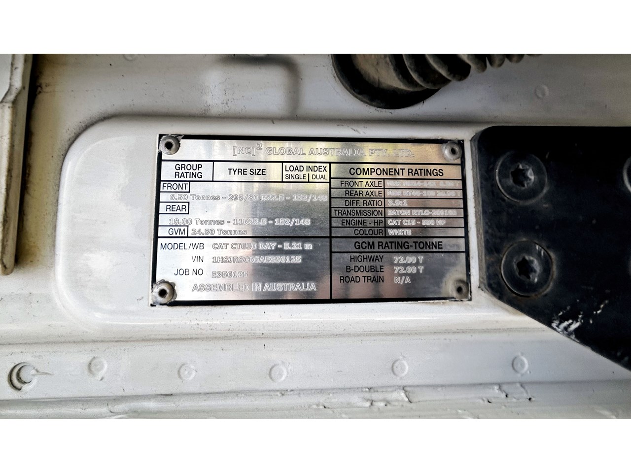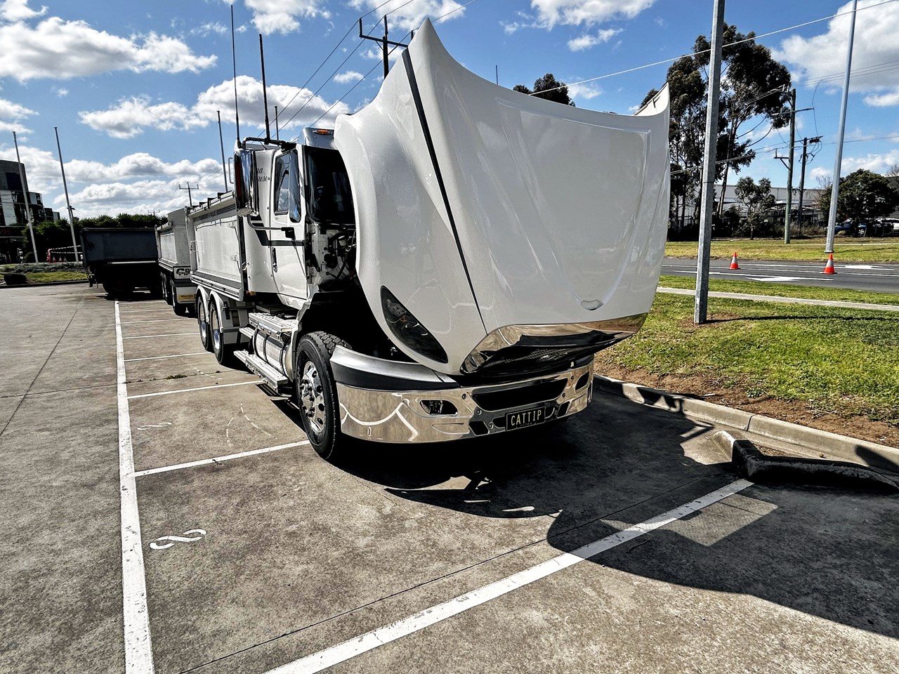 Cat Ct630 GCM 72 ton C15 Acert @ 600 H.P .Eaton 18 speed 46-160 diffs with Diff lock and cross lock Tipper with Quick release Tipper Body and PBS dimension Super Dog Chris's Hardox Bodies and New electric tarps LOW Kms. 450,000.Converts from ringfeeder to Bartlet ball in seconds Extremely clean with meticulous service record. Trailer tyres100% Steer Tyres !00% Drive Tyres 60%. Comes with Roadworthy will pass any test..Many Extras