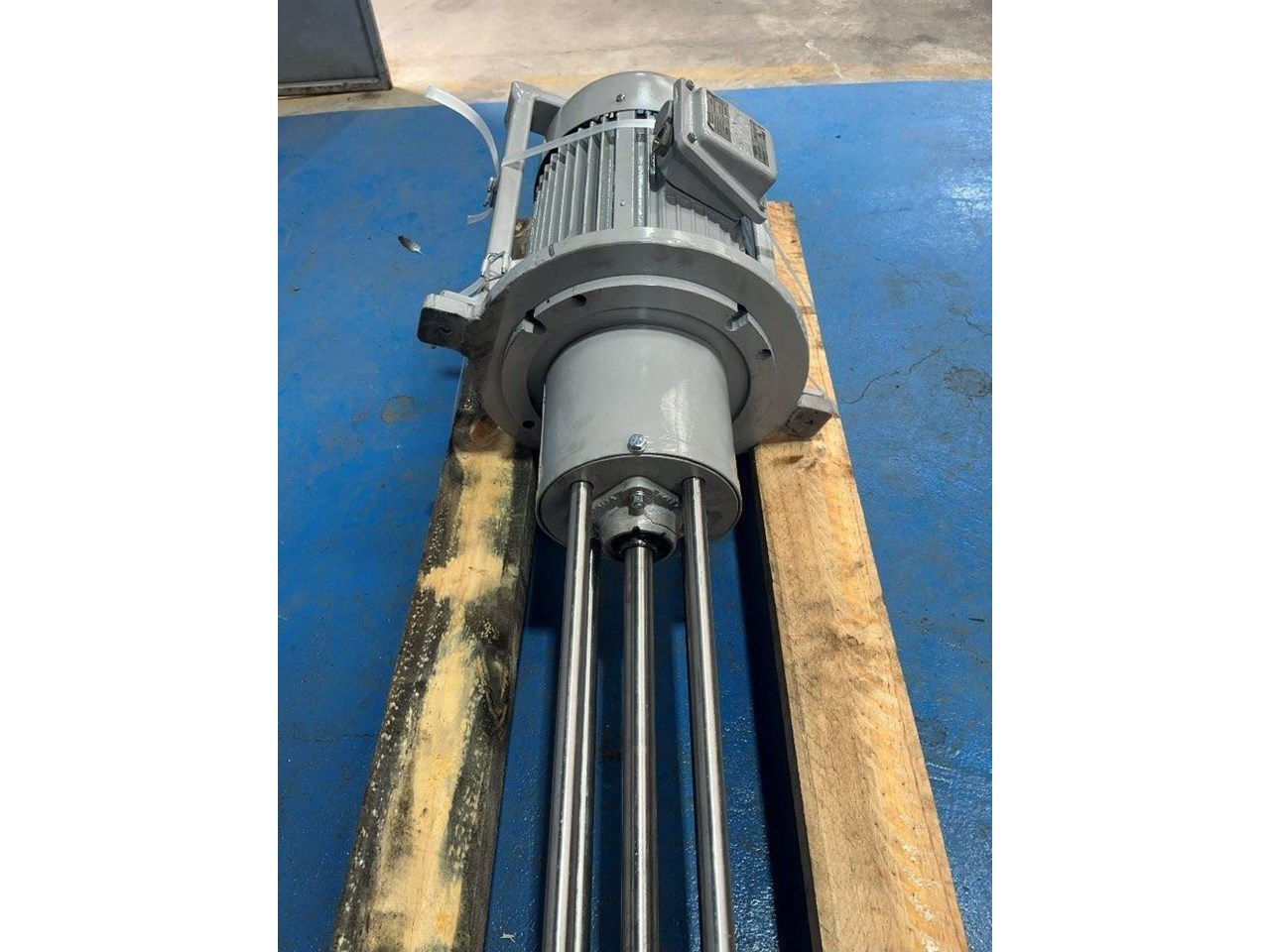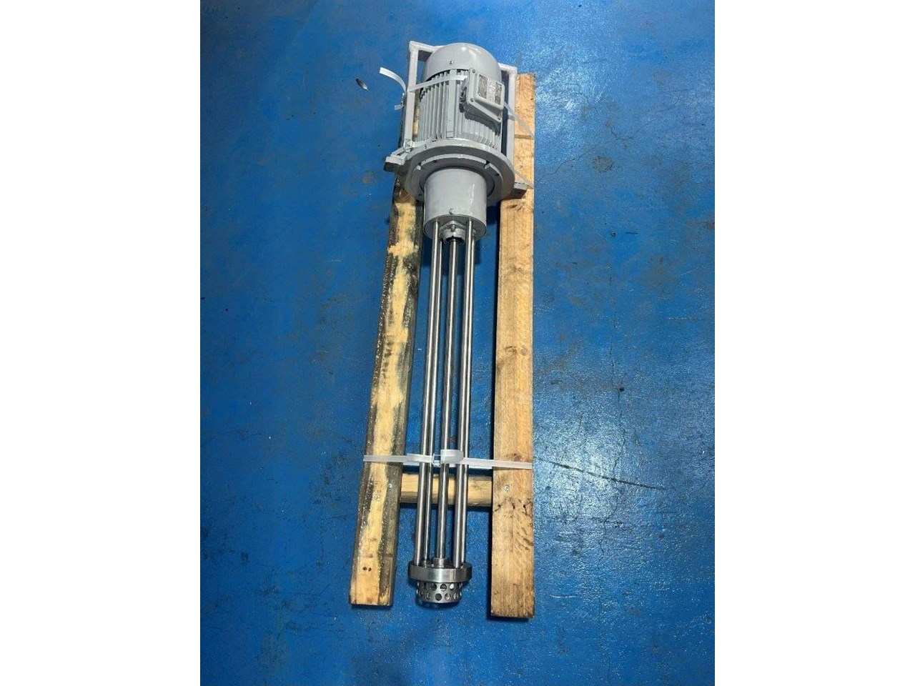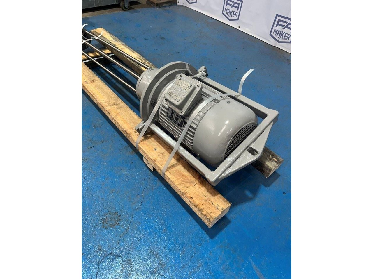 Stainless steel high shear disperser / emulsifier. (High speed mixer) with Ex. motor. Suitable for dropping into tanks to mix or emulsify the liquids. A high shear mixer can be used to create emulsions, suspensions and granular products. It is commonly used in the food, pharmaceutical, and cosmetic industries to emulsify, homogenise, and reduce particle size. Ex. rated motor: 3 Phase 5.5kW, 415V, 10.2A, 2925 RPM. Mixing Head: 100mm Shaft Length: 960mm Overall Length: 1650mm Motor has been overhauled. Unit runs well.