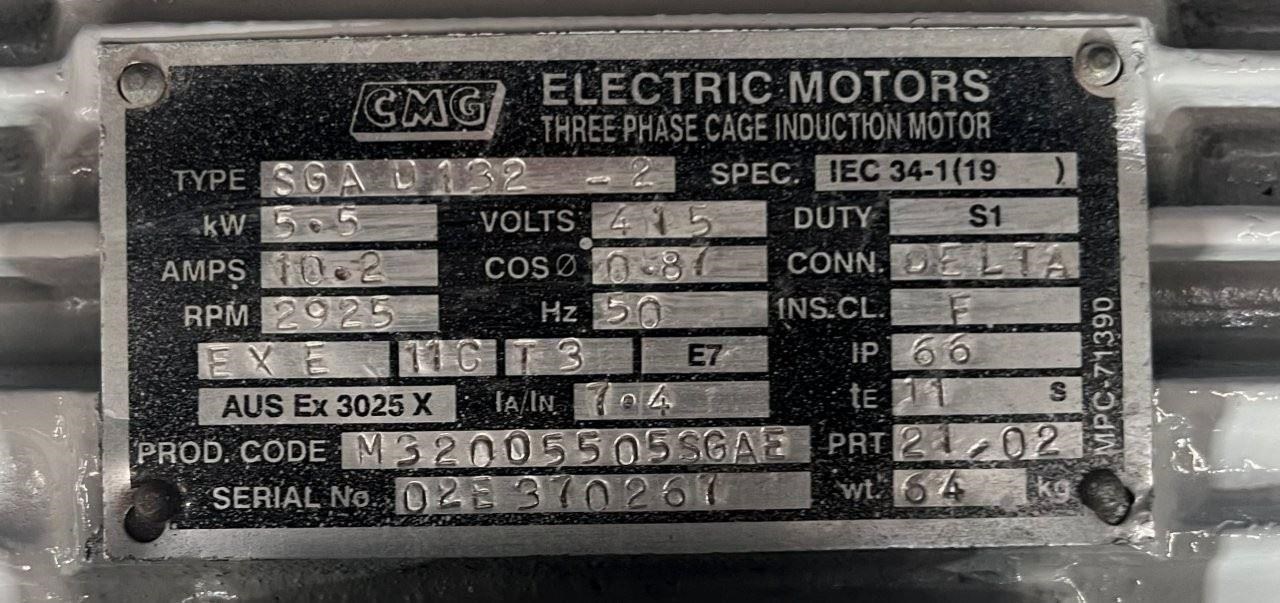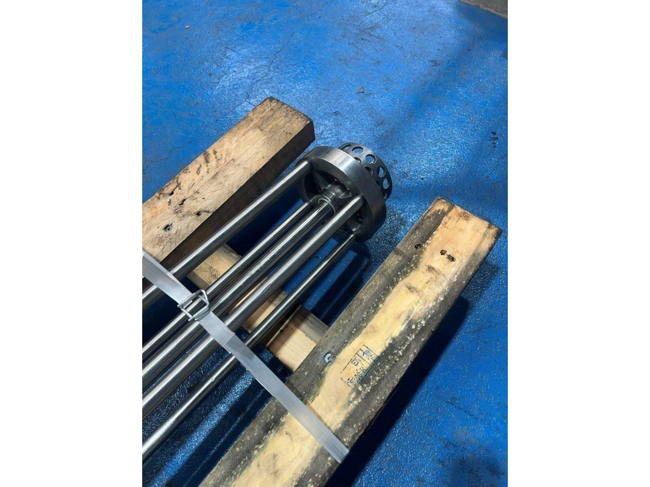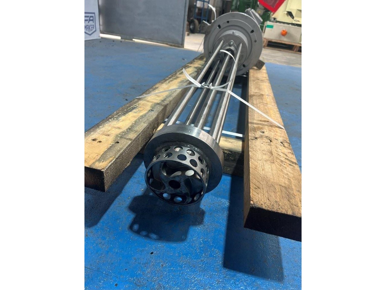 Stainless steel high shear disperser / emulsifier. (High speed mixer) with Ex. motor. Suitable for dropping into tanks to mix or emulsify the liquids. A high shear mixer can be used to create emulsions, suspensions and granular products. It is commonly used in the food, pharmaceutical, and cosmetic industries to emulsify, homogenise, and reduce particle size. Ex. rated motor: 3 Phase 5.5kW, 415V, 10.2A, 2925 RPM. Mixing Head: 100mm Shaft Length: 960mm Overall Length: 1650mm Motor has been overhauled. Unit runs well.