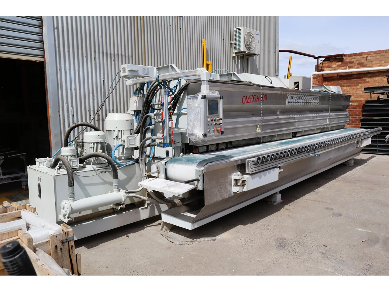 Heavy duty automatic multispindle edge polishing machine for marble, granite, and engineered stone. The Comandulli Omega 100 is designed for high-volume production with precision Italian engineering, delivering perfect edge finishes on straight, rounded, and bevelled profiles with minimal manual input. Used but in great condition, thanks to the durable manufacturing and quality parts by Comandulli.