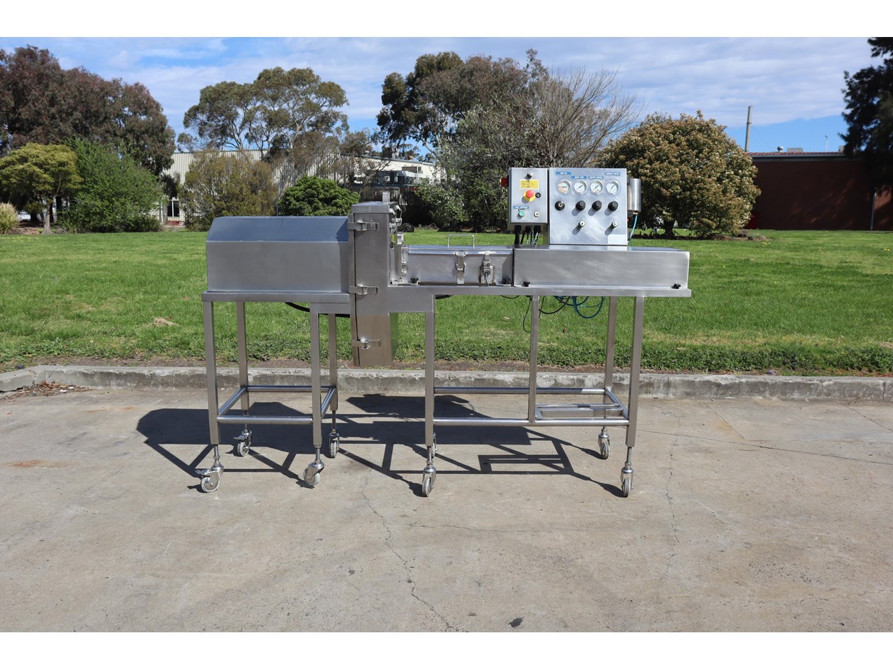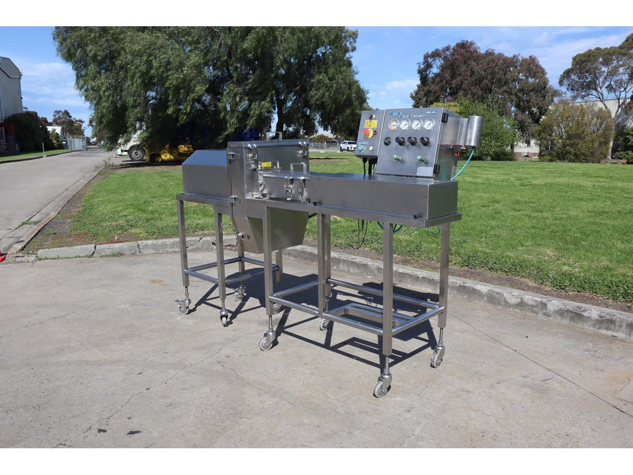 The system features a heavy duty grating disc, continuous feed chute, and easy to use push-button interface with pressure gauges for monitoring and adjustment. Its hygienic stainless steel build allows for fast cleaning and long term durability, while the mobile frame with casters ensures flexibility on the production floor.