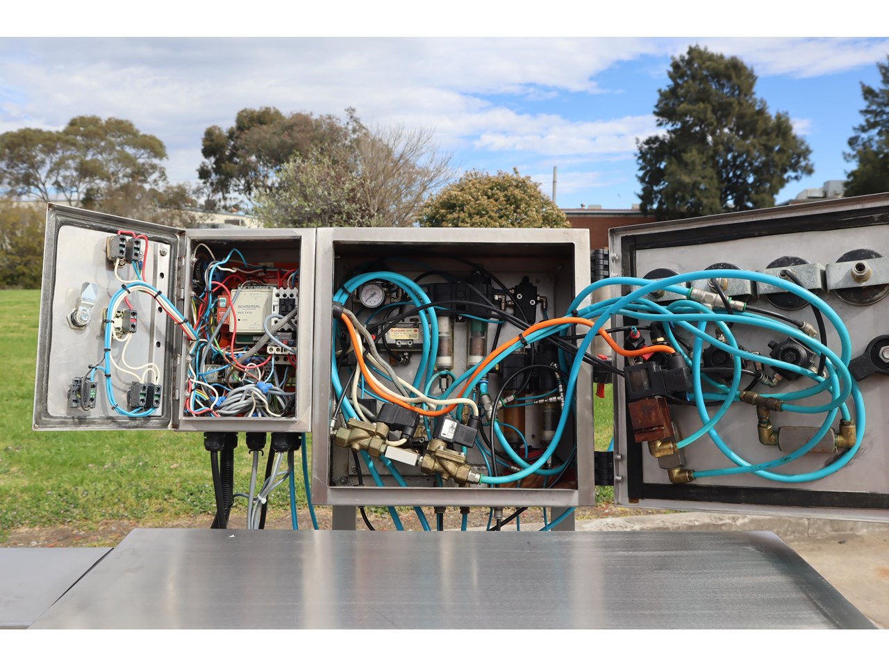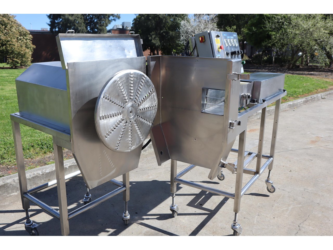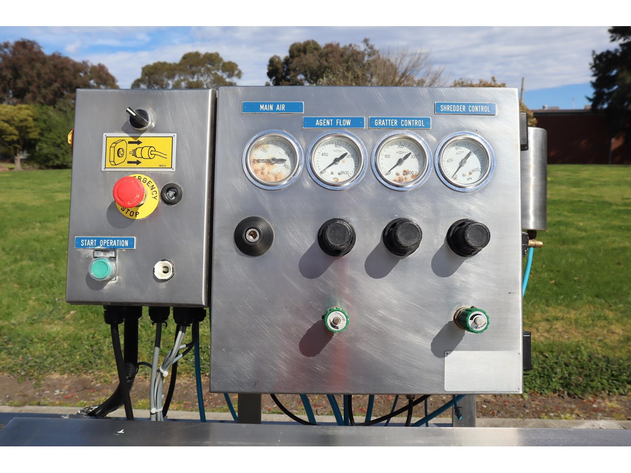 Stainless steel grater/shredder with integrated pneumatic control panel built for high volume processing. Designed with both efficiency and consistency in mind, it combines rugged construction with precise control, making it ideal for demanding production environments.