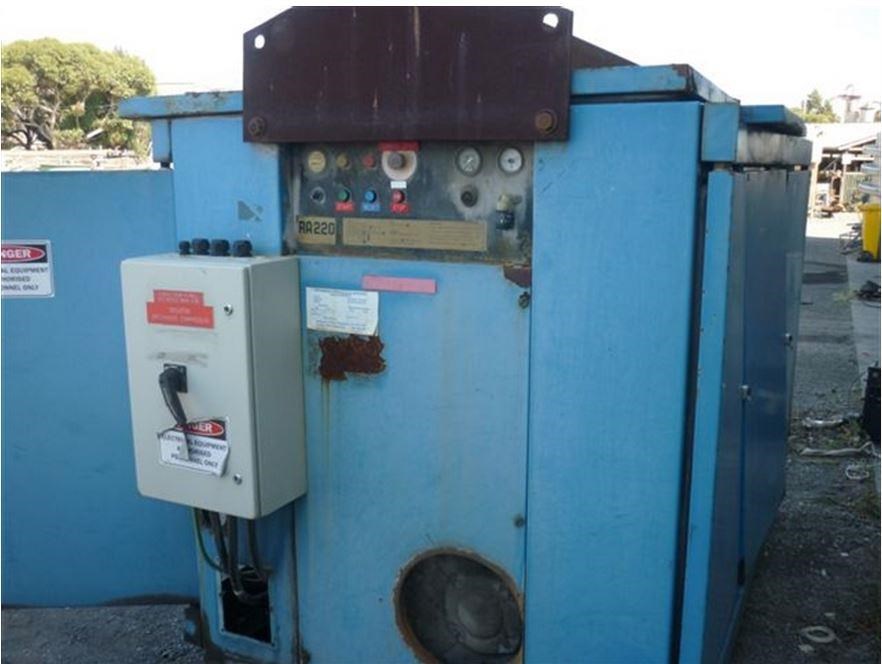 Features:-- CFM - 880 Description:-- Compair 880CFM Model RA 220. Motor size 220hp 415v. Complete with Starter. Was Running. Ex CSR. Had New Air End not long ago.